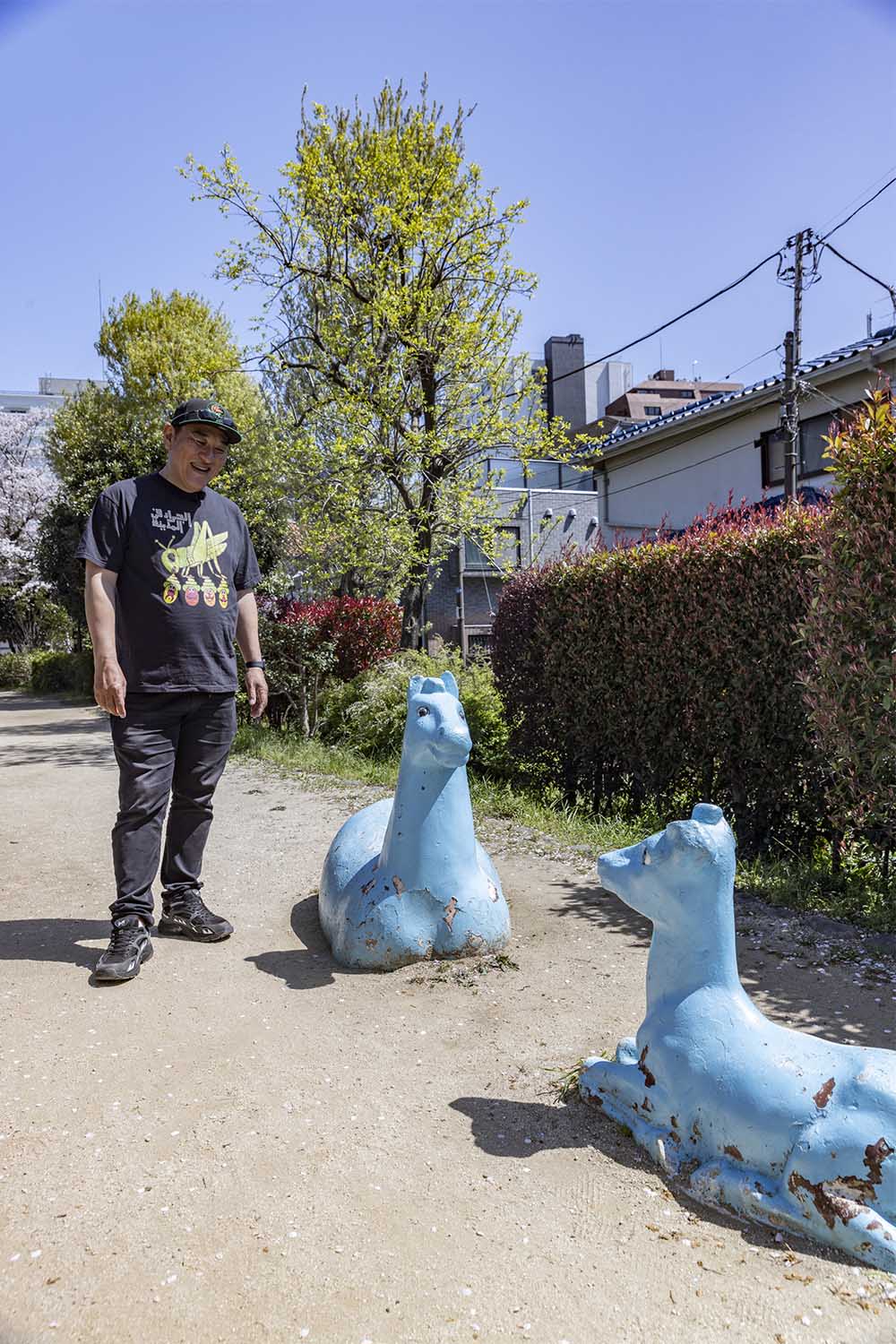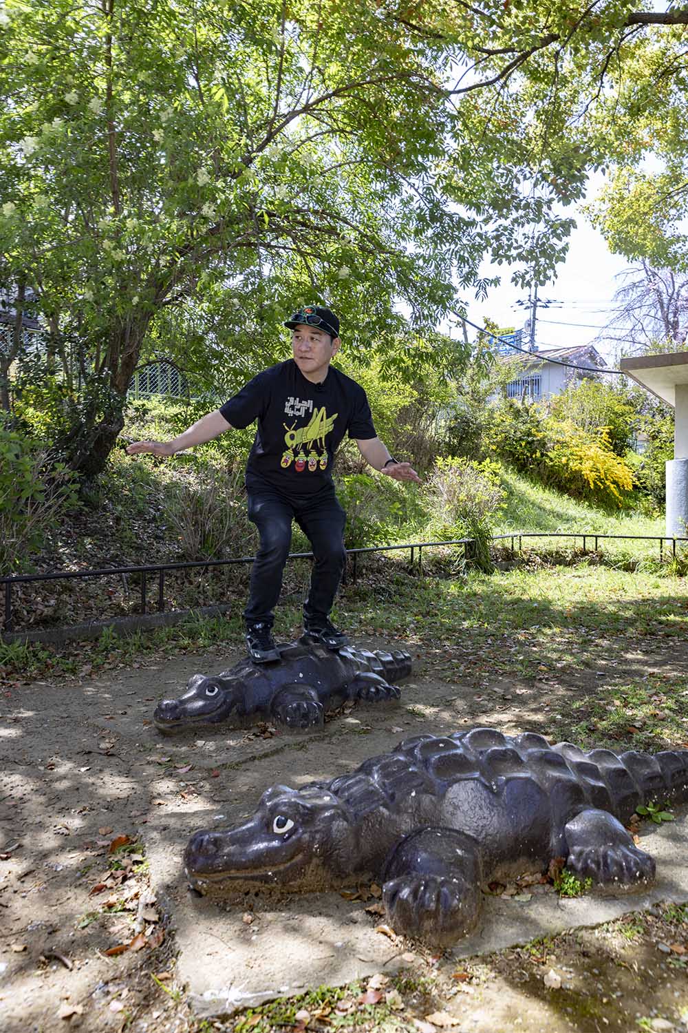 うん、もう井の頭通りまで来たんだね。いや俺さ、この公園企画に限らず、今までいろんなまたがりコンクリ遊具を見てきたけど、ここでコンプリートできた気がする! こんだけ公園に行き倒した俺たちが驚くモノがまだあったんだね。多分ワニが最終兵器だった気がするな!