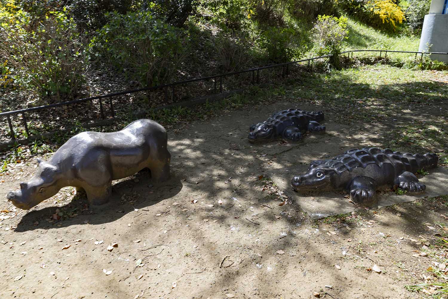 そしてまたしてもコンクリ遊具が登場(笑)。シロクマはこっちの方がいいね、ちゃんと白く塗ってあるもん。それでこのイタチもまあまあ珍しいんだけど、サイと、このワニも見たことないよ。初めて見たわ。