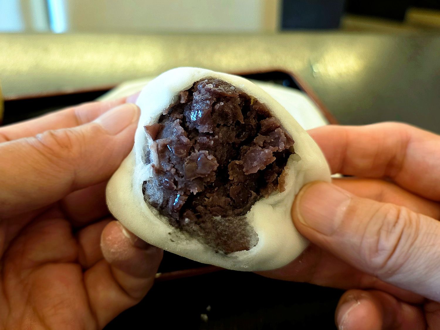 なめらかで、きめ細かい餅と、塩気の効いた粒あん。絶妙な甘さと塩加減で、人気なのも納得のおいしさです。