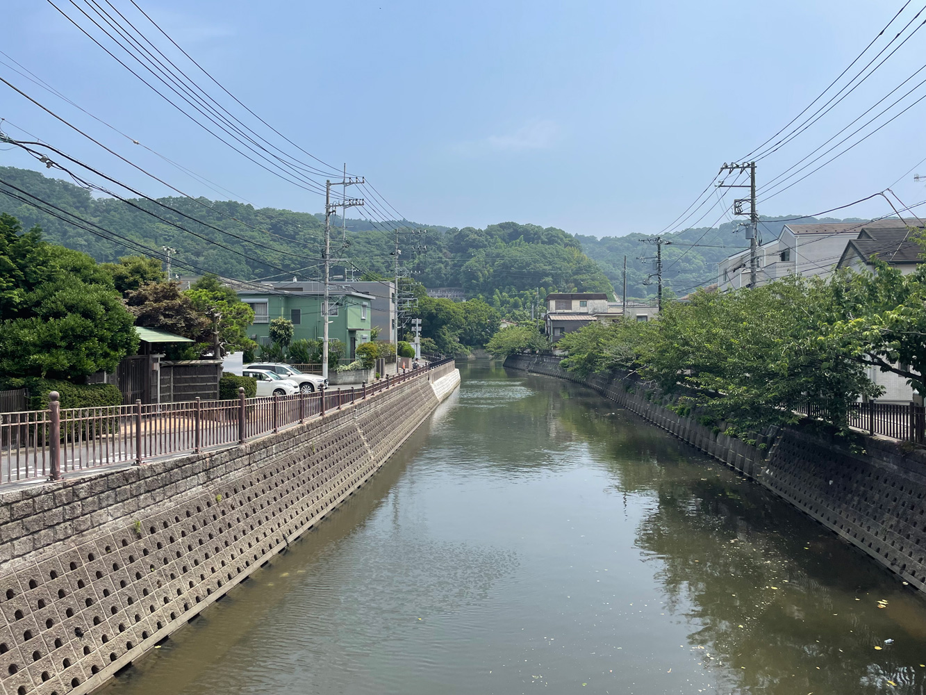 市役所から逗子大師通りを歩き、田越川を渡る。田越川は逗子市沼間の水源から逗子市内を貫流して相模湾へと注ぐ二級河川だ。この日の取材では田越川に沿って逗子海岸まで歩くルートを予定し、あらかじめいくつかの場所をリサーチしてきた。