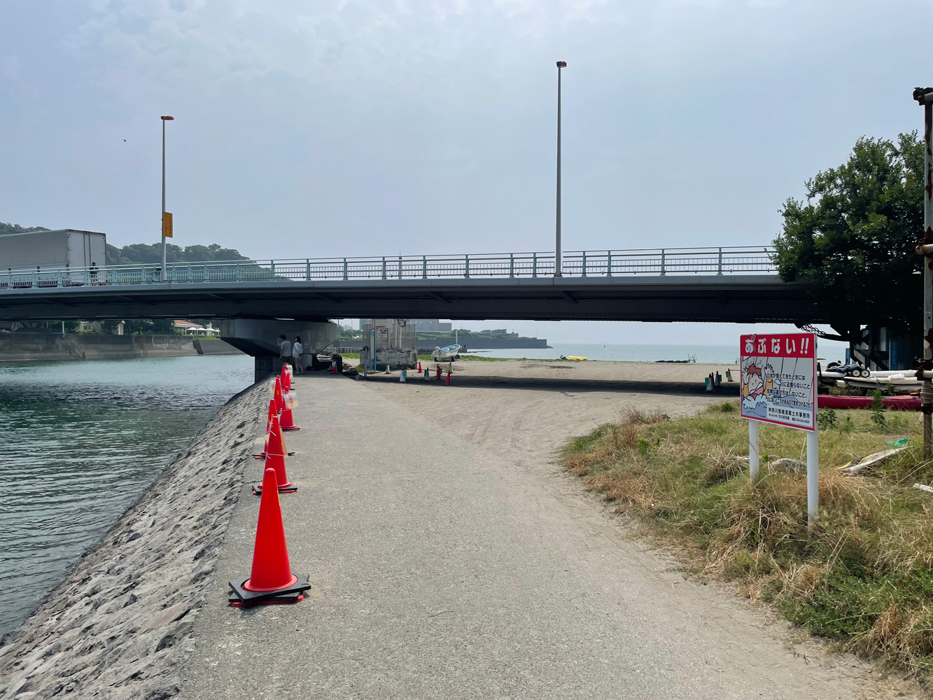 渚マリーナの側から河口へ向かうと、渚橋の下をくぐってそのまま砂浜まで行けるようになっている。