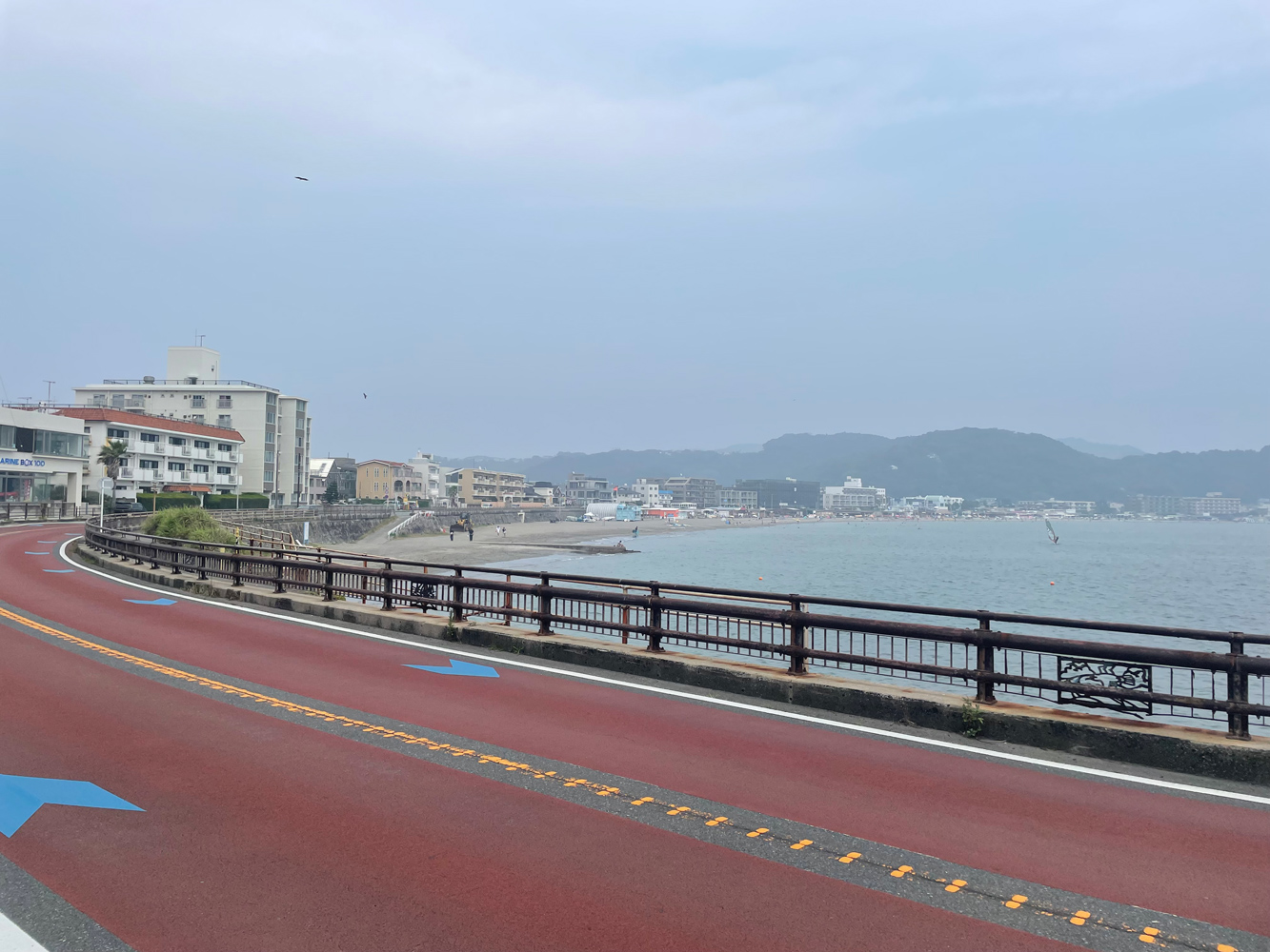 河口から、いよいよ砂浜の広がる逗子海岸へ