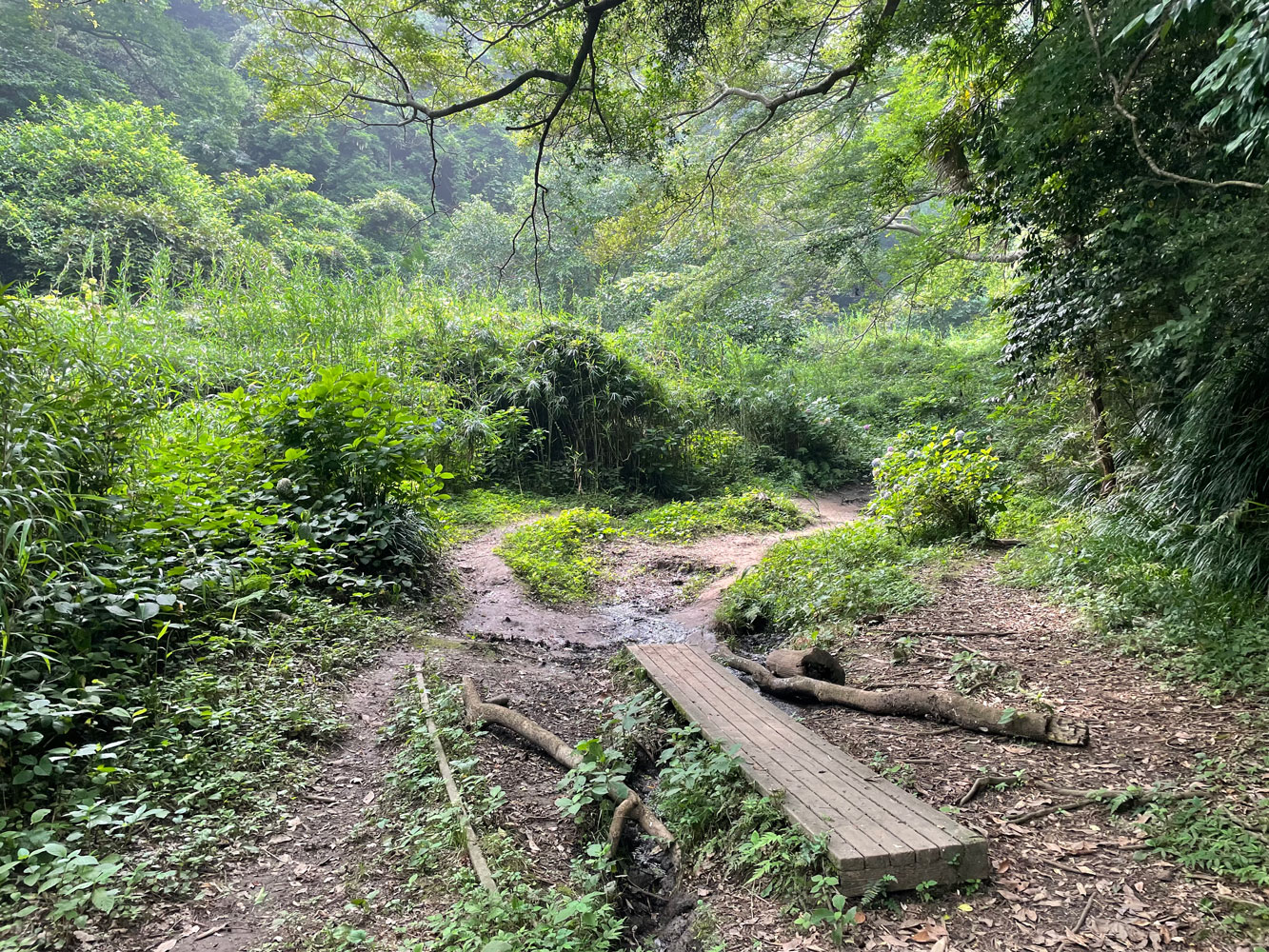 これが失敗の始まりで、「公園に続く坂道」程度のものだと思っていたのに、実際は鬱蒼(うっそう)とした草木をかいくぐりながらぬかるんだ急勾配の山道を20~30分休みなしに上り続けなければならないという、東京の平坦な低地で育った中年にとってはなかなかのハードなコースだった。
