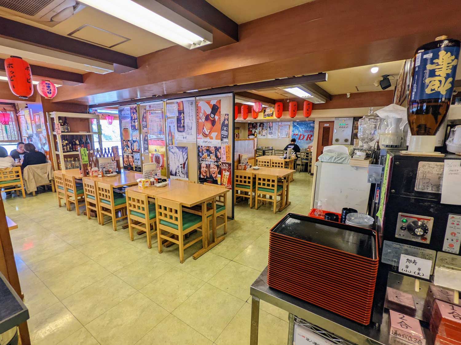 ひ・ろ・い……広いっ! そうそう、冒頭で語っていた“大箱”がこんな感じなんだよ! 古い駅前建物なのだが、しっかりと掃除が行き届いている清潔感。席と席の間にゆとりがある解放感もタマラナイ。