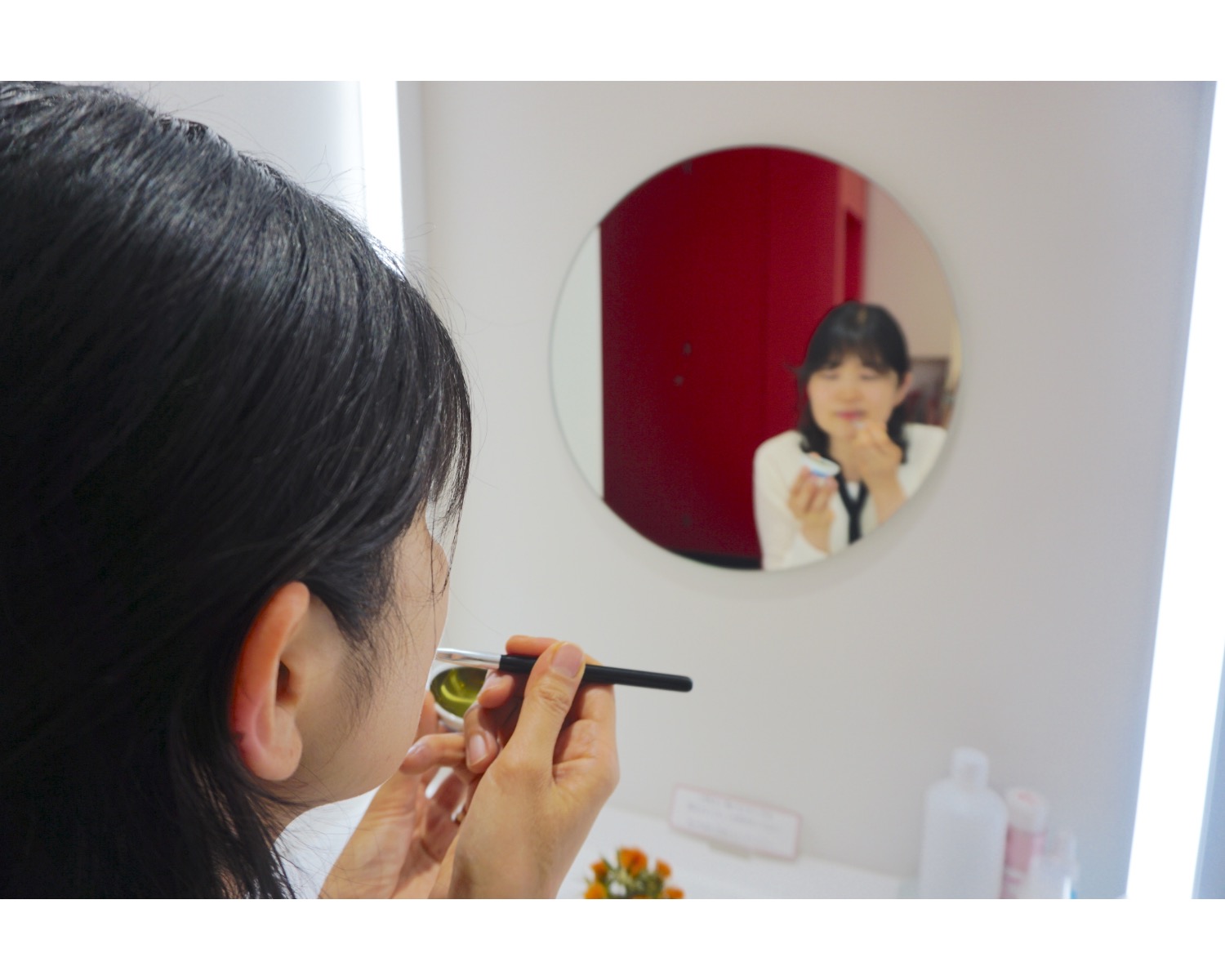 館内では無料で「紅点し(べにさし)体験をすることができます。紅は口紅のほか、アイシャドウ、チークなどさまざまな用途に使われていたのだそう。