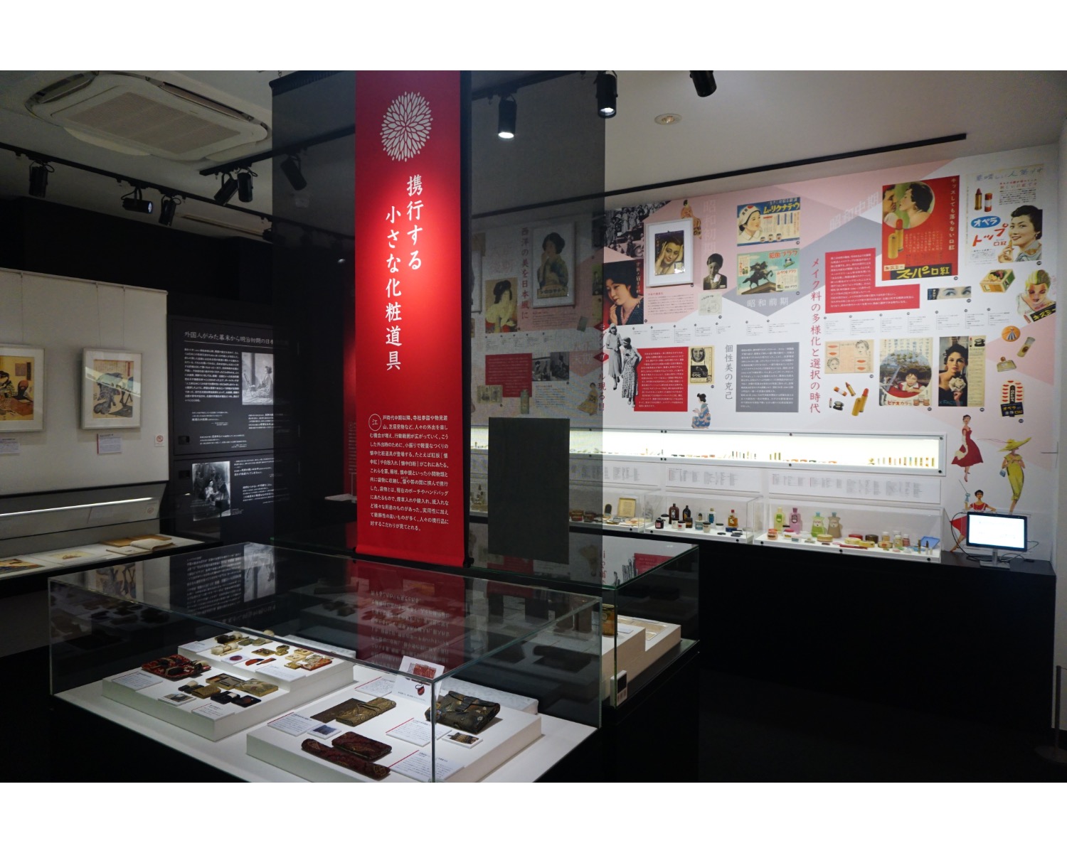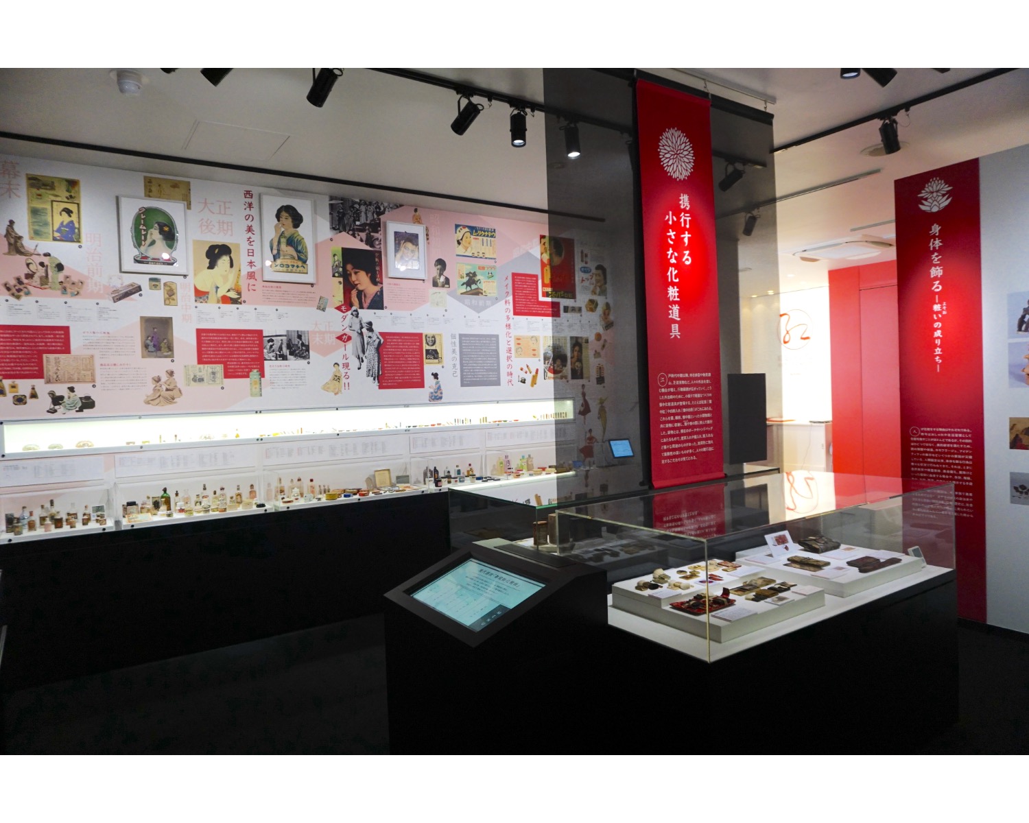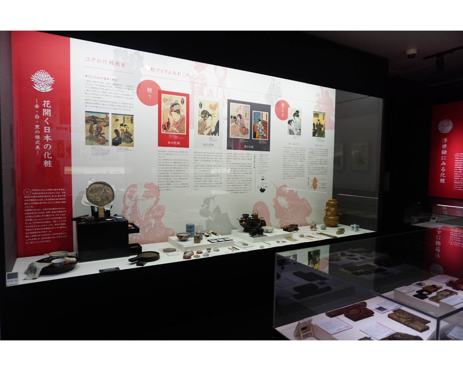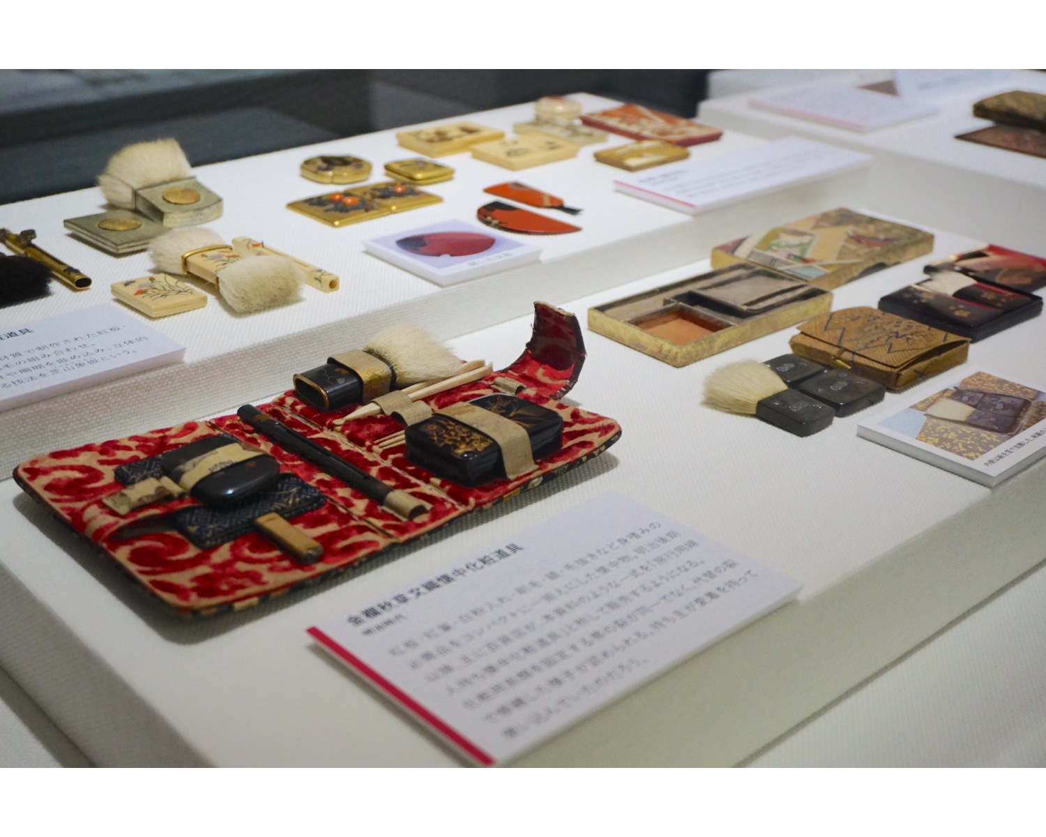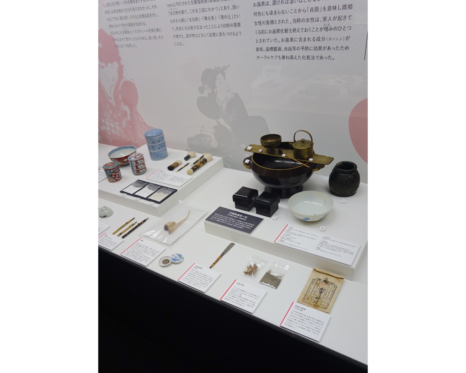 続いて、化粧の歴史のコーナーへ。こちらでは、江戸時代の紅やお歯黒の道具など、化粧道具の実物を見ながら歴史をたどることができます。