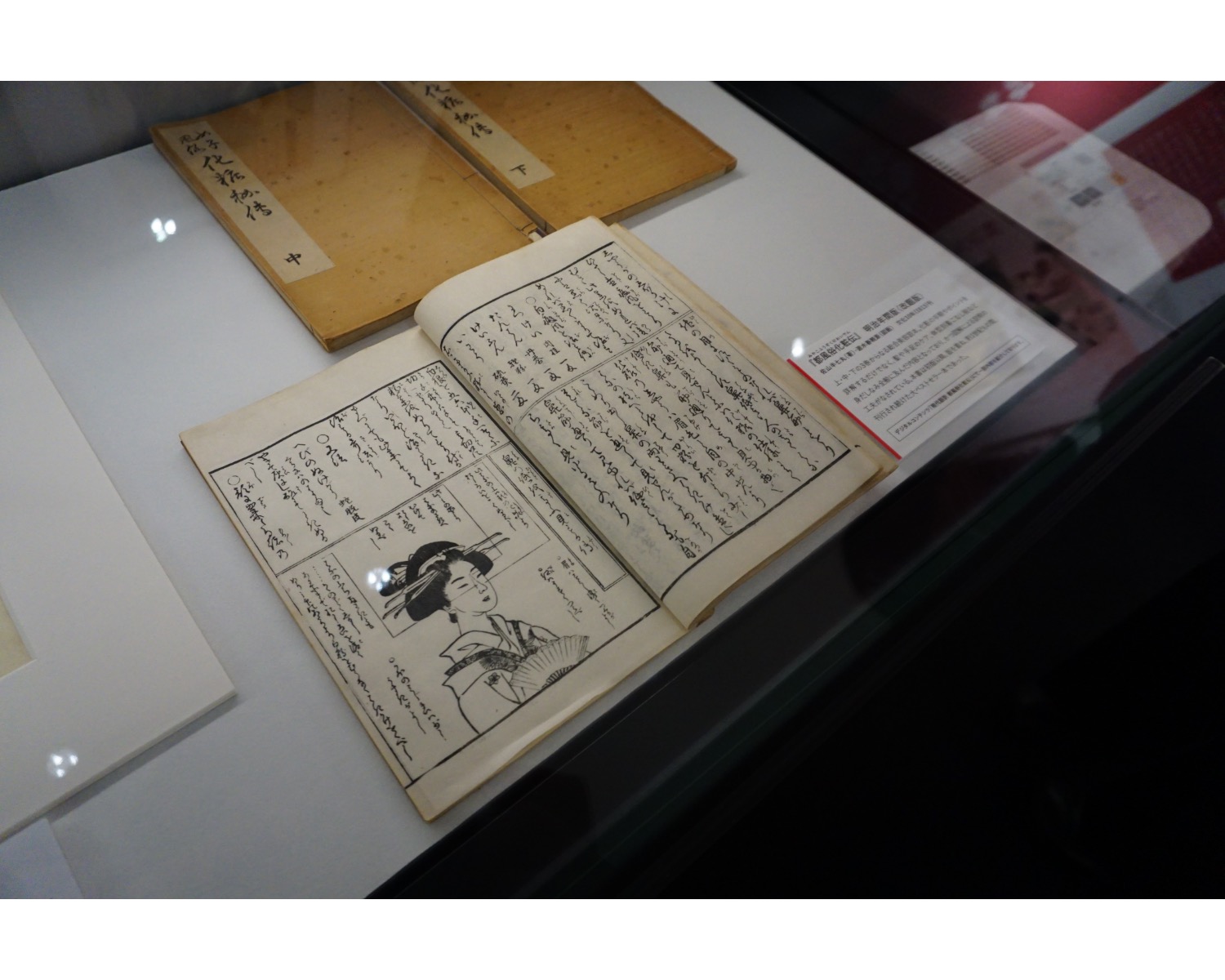 出産すると眉を剃り落とすなど、化粧まわりの制限も多い時代ではありましたが、きれいになりたい気持ちから女性たちは工夫を重ねていきました。そんなニーズに応えたのが、文化10年(1813)の美容本『都風俗化粧伝(みやこふうぞくけわいでん)』。大正時代まで刊行され続けた大ヒット本なのだとか。実践的なメイク法が紹介されており、タレ目or吊り目メイクなど現代にも通ずる内容です。お肌をしっとりさせるために猪の脚を用いる(つまりコラーゲン?)といった、現代人にはハードルが高すぎる方法も記載されていてとても面白いです。館内のタッチパネルを使って中身の一部を閲覧することができます。