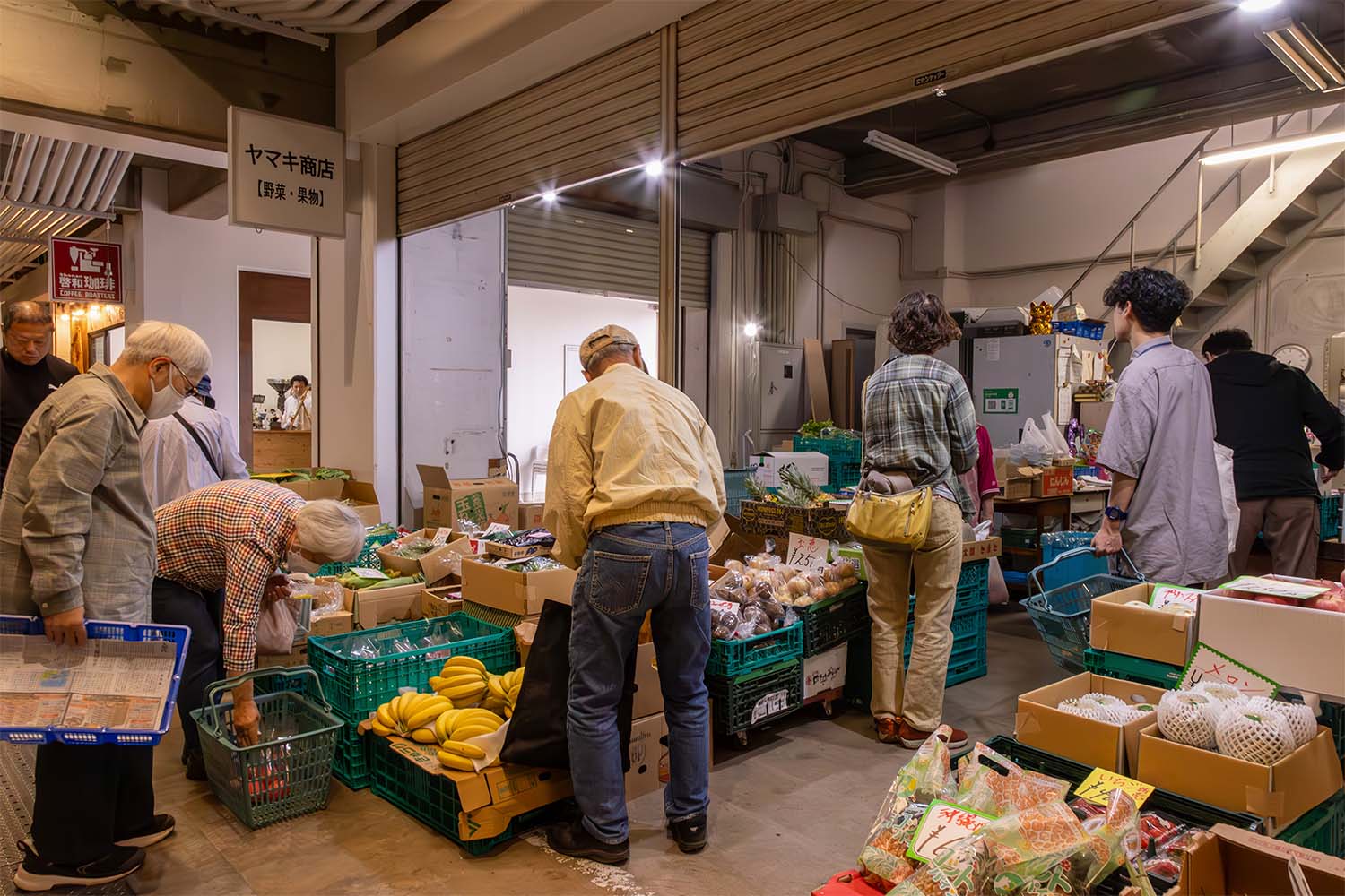 つい意気込んでしまい、7時前に到着。しかし、市場はすでに動いていた。湘南産・三浦産が目白押しの青果『ヤマキ商店』をのぞくと、女将さんの「どんどんなくなっちゃうよ」の言葉どおり、品定めしている先から野菜が消えていく。