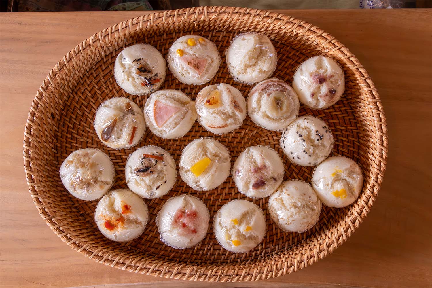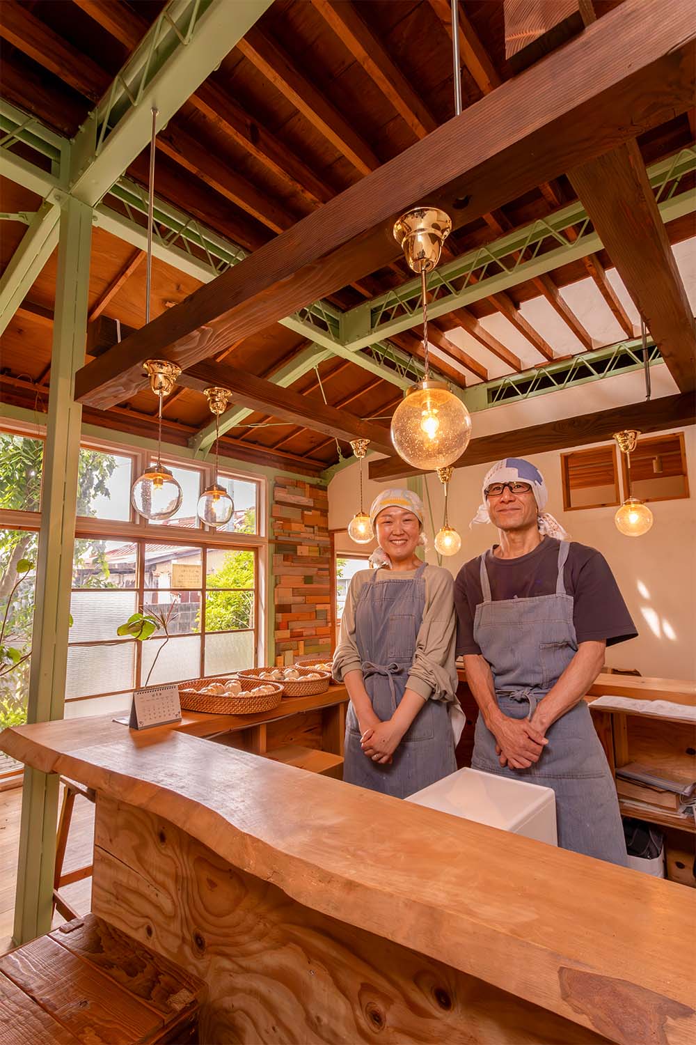 夫妻揃って整体師の大出友晃さん・香織さんが1年半かけて民家を改装。廃材を活用したクラフト感が居心地いい。また、国産小麦を天然酵母でゆっくり発酵させた生地が自慢の蒸しパン110円〜のファンも多い。素朴な味わいでむっちりもちもち。