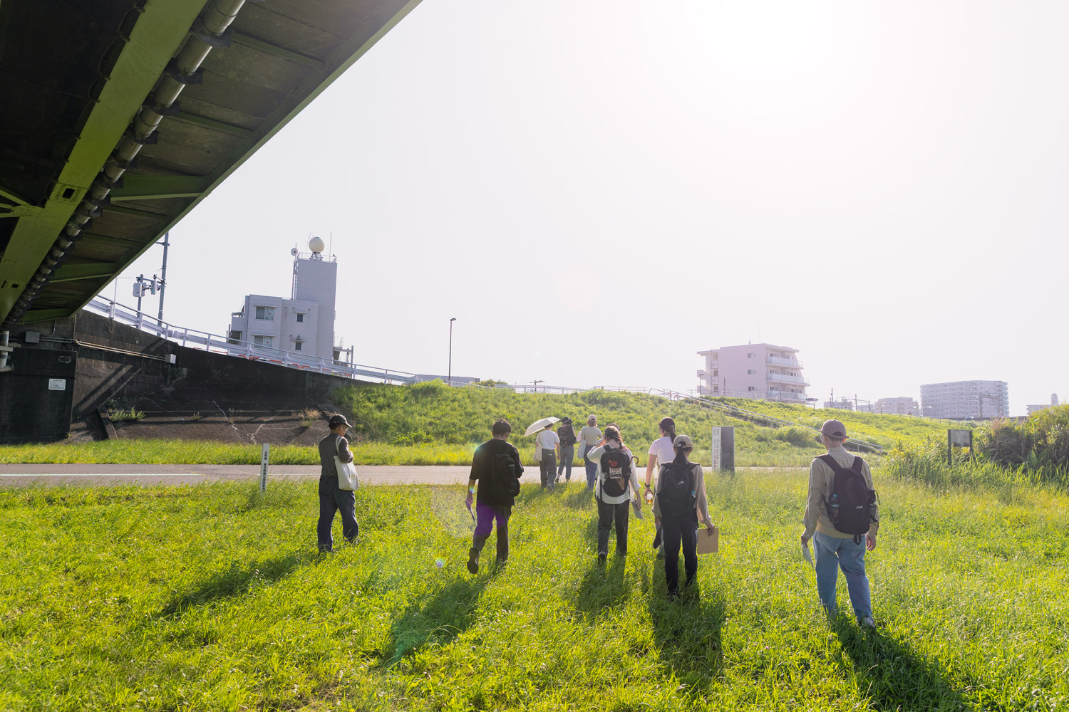 北十間川に架かる境橋を渡り、東武亀戸線の小村井駅から電車に乗って東向島駅へ。曳舟(ひきふね)川通り沿いの寺島警察署跡を経由し、最後の目的地である荒川河川敷を目指した。