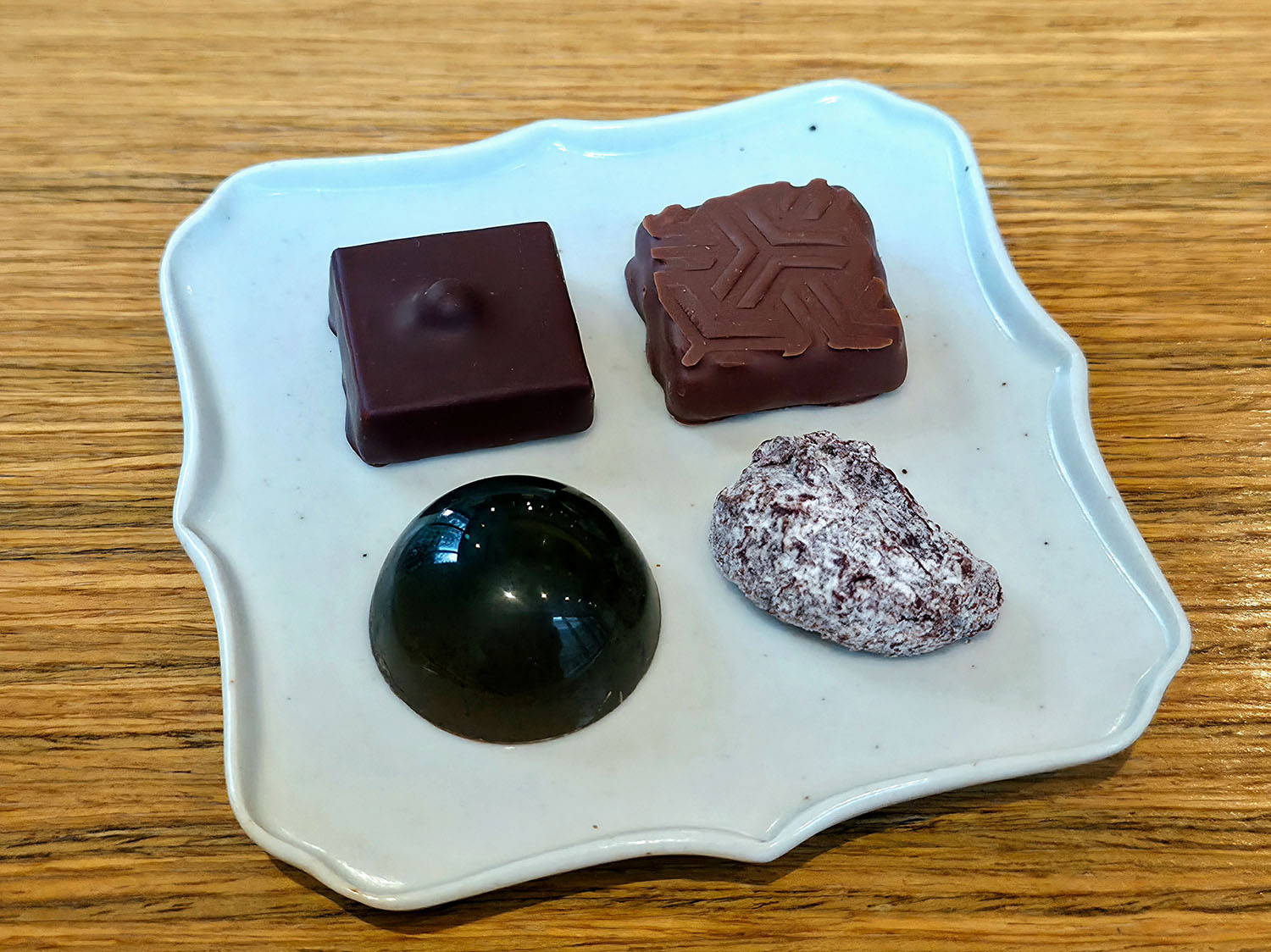 イートインでボンボンショコラをオーダーすると、自家製トリュフチョコレートの“日本橋Hamachoco(1袋1728円)”を一粒試食できるのもうれしい。
