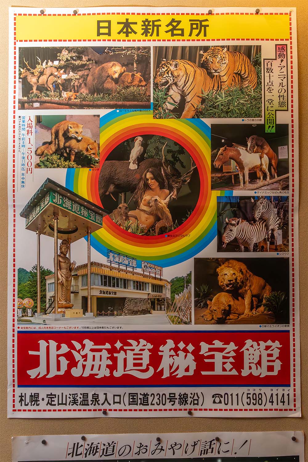 見世物小屋の絵看板、ピンク映画のチラシ、キャバレーの踊り子のプロマイド、オリエント工業のラブドール、そして2000年に閉館した秘宝館「鳥羽SF未来館」の展示。大事なトコロは一応隠してあるけれど、コンプラ研修の講師が見たら鼻血を出してひっくり返りそうなハレンチなものもある。