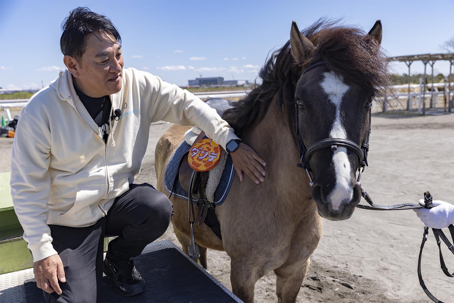 なるほど。その辺の仕組みとかもあとで聞いてみよう。失礼しまーす。お、早速馬が走ってるじゃん! こんにちはピエール瀧です!