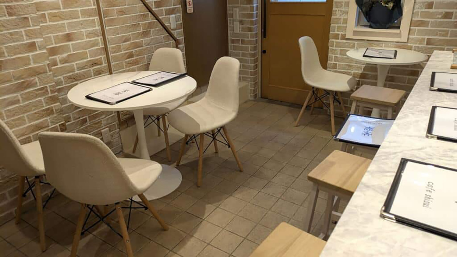 店内のインテリアは白で統一。テーブル席とカウンター席があります。