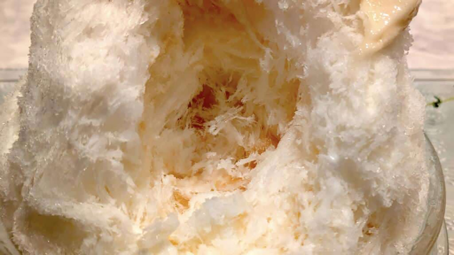 ふわふわの氷の上には、自家製のピューレを使ったエスプーマ。さらにフレッシュな桃がのっています。