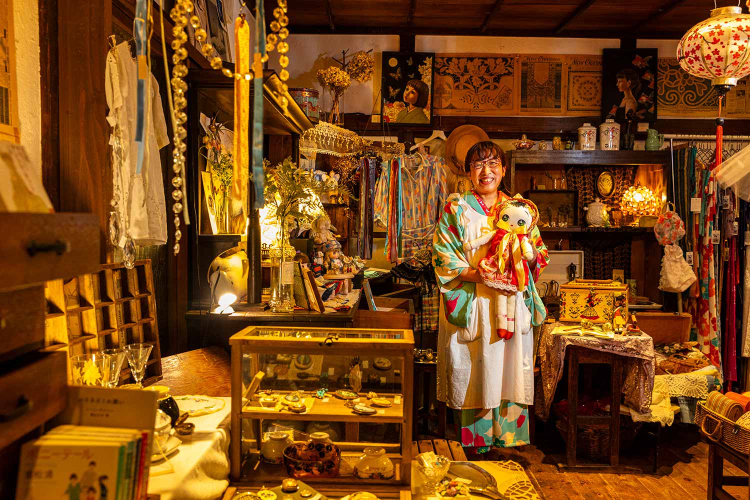 月に5日間しか開かない『オケモト手仕事雑貨店』の扉を開くと、耽美(たんび)系作家約50人の雑貨がひしめいていた。オケモトさんは「杖をついている方も、ここではパッと乙女に戻られますよ」と口元を綻(ほころ)ばせる。