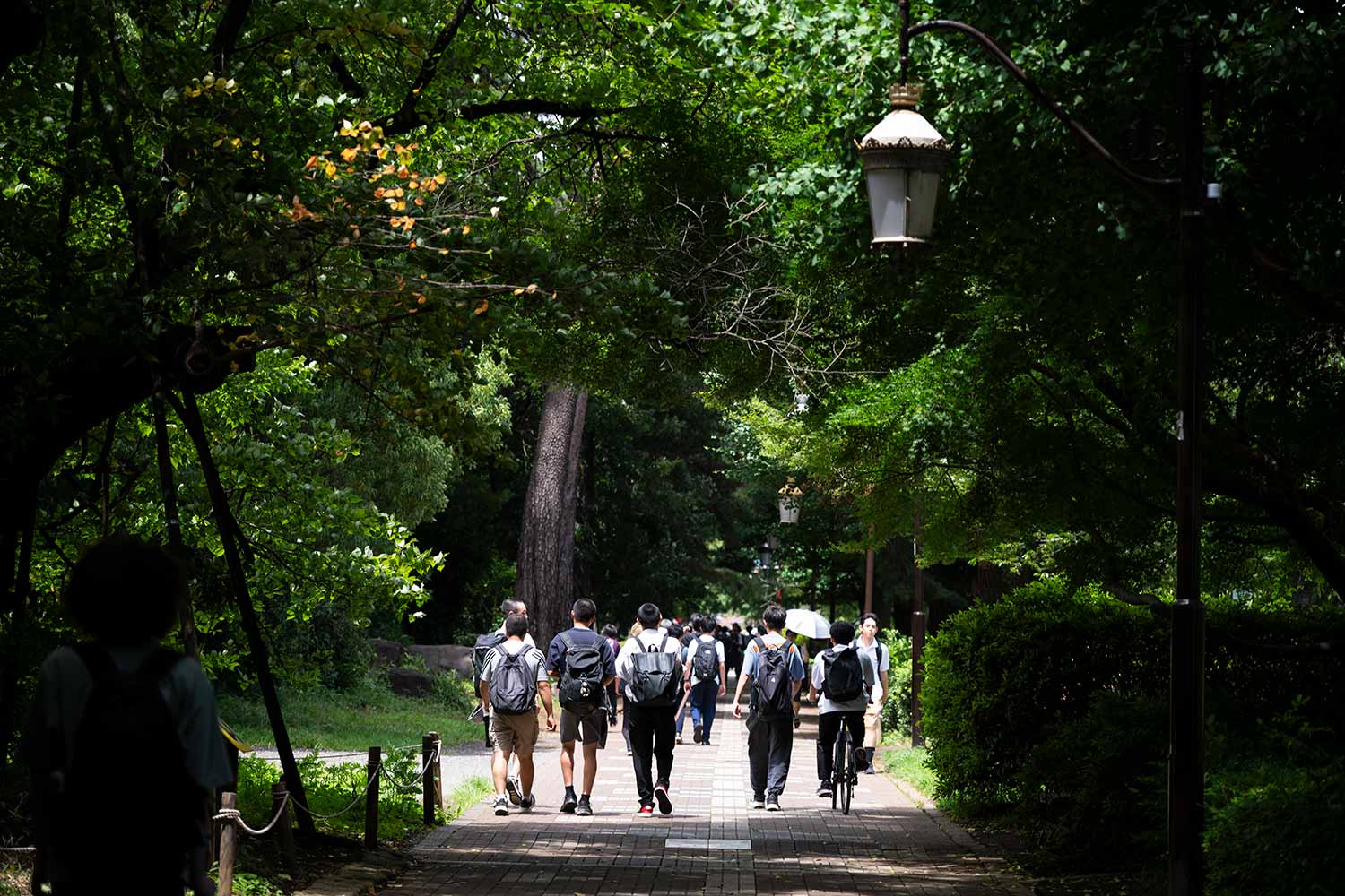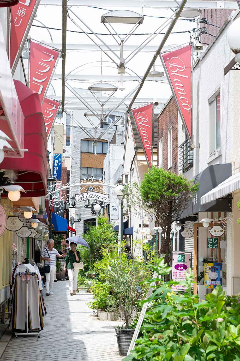 南口の駅前からまっすぐ延びる大学通り。道幅が広く緑に包まれた並木道は、穏やかでゆったりとした空気が流れ、行き交う人からそこはかとなくゆとりと品が感じられる。