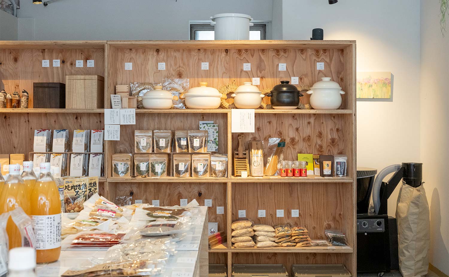 店主・加藤優さんの米好きが開店のきっかけに。自ら産地を訪ね、生産者の思いに共感した米のほか、ごはんのお供、米粉のお菓子、ごはんを炊く土鍋、取り扱う米の産地の文化など、米のまわりについて紹介。店内のカウンターでは土鍋で炊いたごはんや定食、おにぎり、日本酒も提供。米に関するワークショップも随時開催。