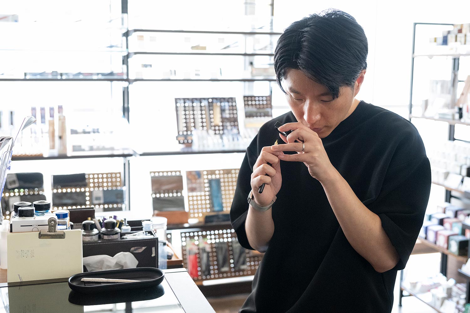 国立で約70年続く文具店『金文堂』の万年筆コーナーから派生した『KINBUNDO.』も、もっとゆっくりと対話をしながら選んでほしいという思いが開店のきっかけに。「筆記具に限らず、時計やカメラなどにも関心が高く、落ち着いてお話していただける方が多いです」とは、店長の尾川貴幸さん。都心以外で個人経営の万年筆店はあまり見かけないなと思ったけれど、話を聞いて国立にあるべき店だと確信した。