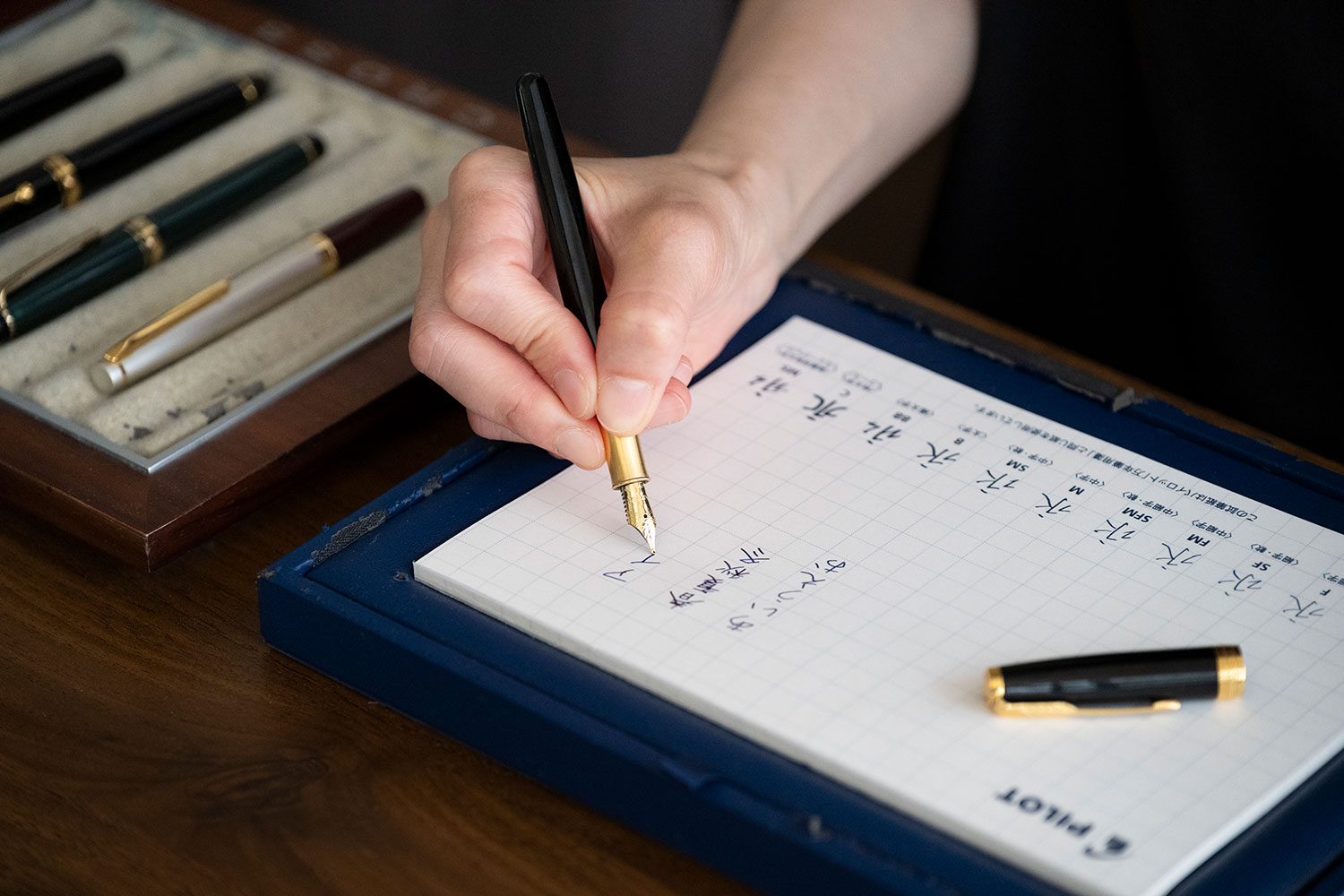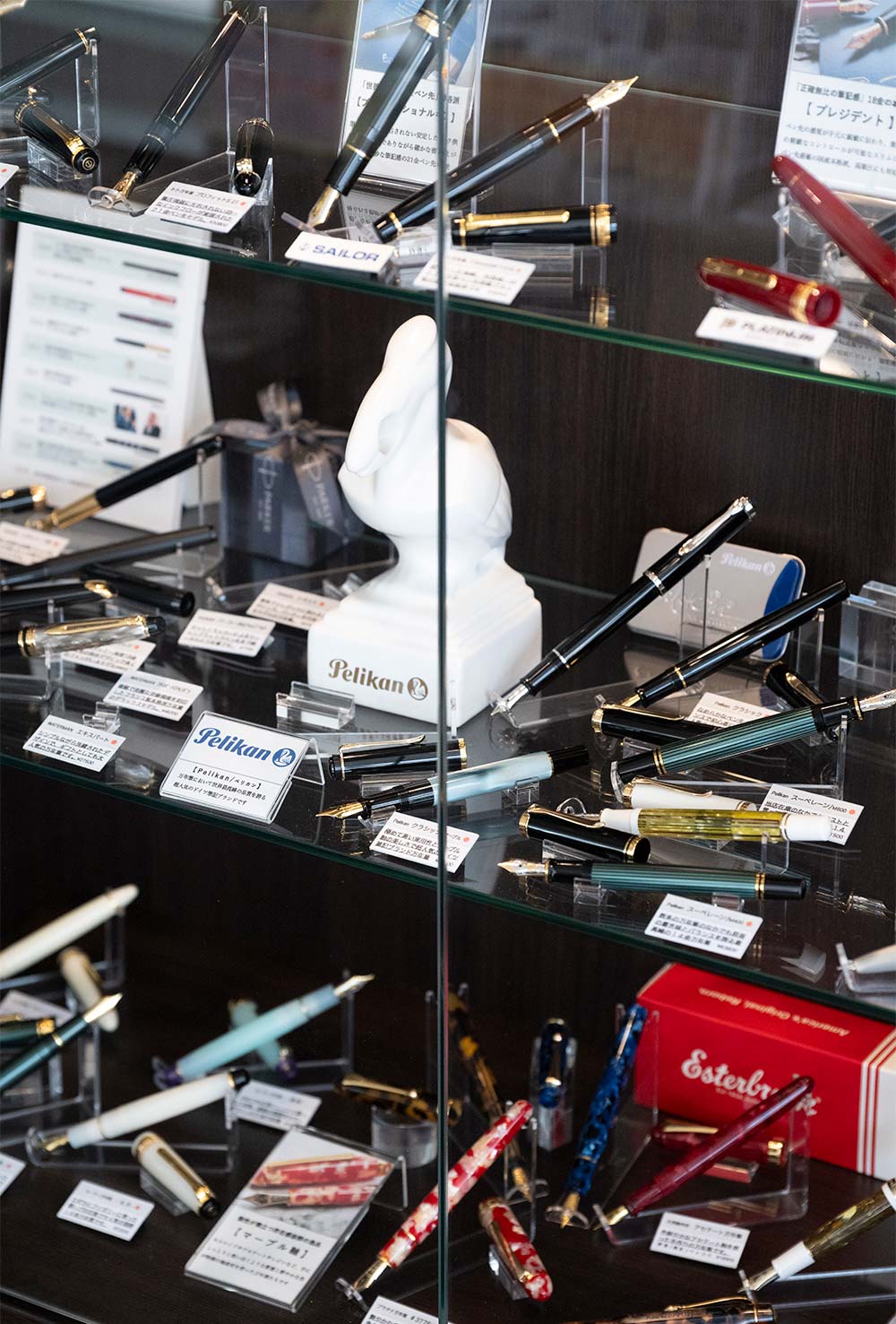 手頃な1000円前後から憧れの一本まで、デザインや書き心地がさまざまな万年筆がずらり。ゆったりとしたスペースで自由に触ったり、試し書きができたり、リクエストがあれば手に届かないような高級品の書き心地も体験させてくれる。一人一人の書き癖や筆圧などに合わせた一本をおすすめしてくれるので、じっくり話を聞いて選びたい。