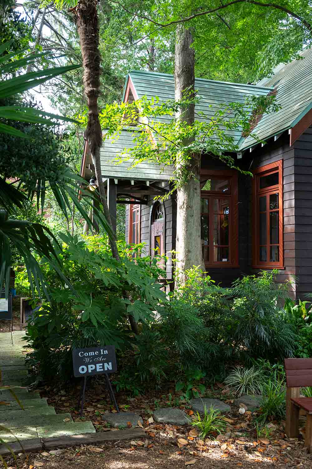 そして今、国立でひときわ注目を集めているのが『カフェおきもと』。昭和初期に国分寺崖線(がいせん)の高台に建てられた別荘の一軒だ。所有者が亡くなり建て壊す話もあったが、縁あって隣に住んでいた久保家が貴重な建物を受け継ぎ、残すことを決めた。「カフェとして息を吹き返した家を地域の人たちと守っていけたらと思っています」とは、店長を務める久保愛美さん。竹林から洋風の庭園を抜けて現れる洋館はおとぎ話の世界! 細かい装飾も美しく、当時の優雅な情景が思い起こされる。