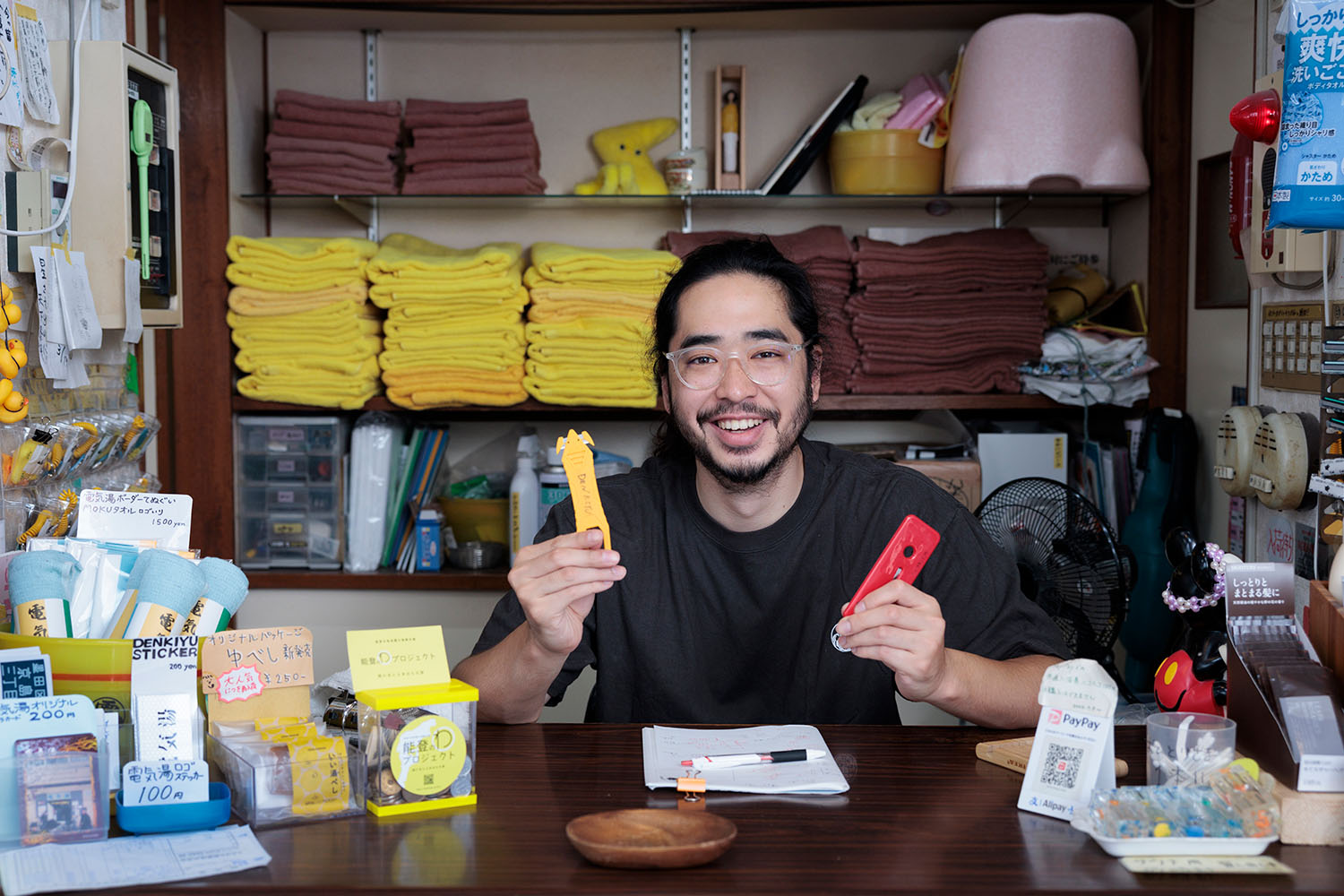100年以上続く『電気湯』の4代目。銭湯は“知らない人と生きる手段”が信条。浴場で展示や音楽イベントを企画したり、2025年6月には書店『kamos』(「よ」の札)をオープン。