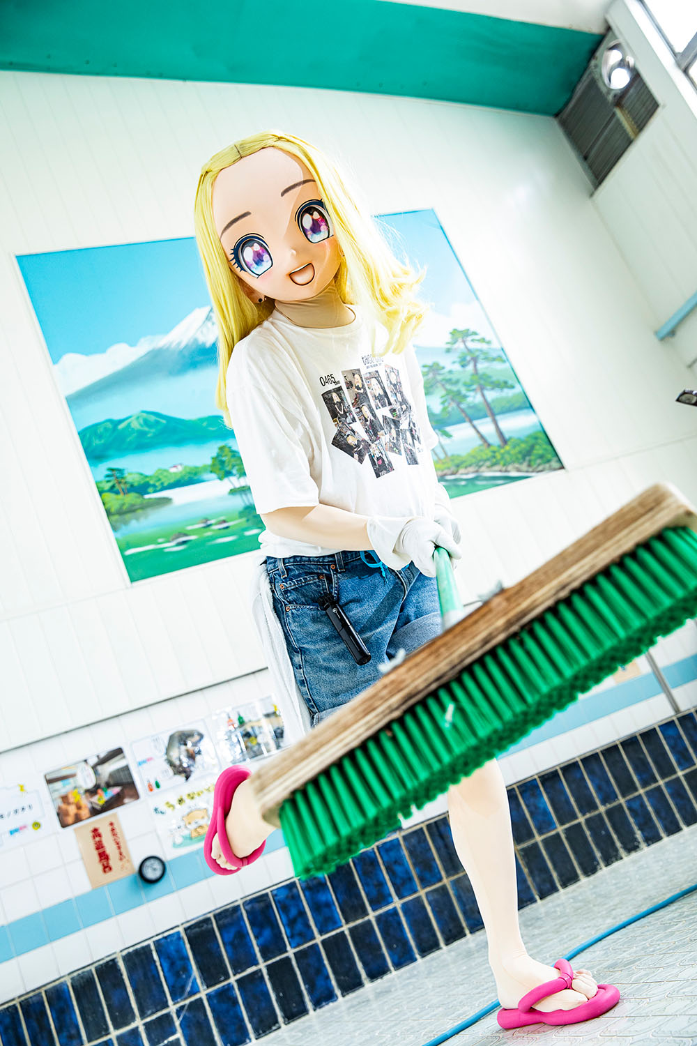 商店街の有名人、17歳の美少女おしるこちゃん。銭湯文化と地域社会を学ぶため、最近『電気湯』で働き始めたそう。