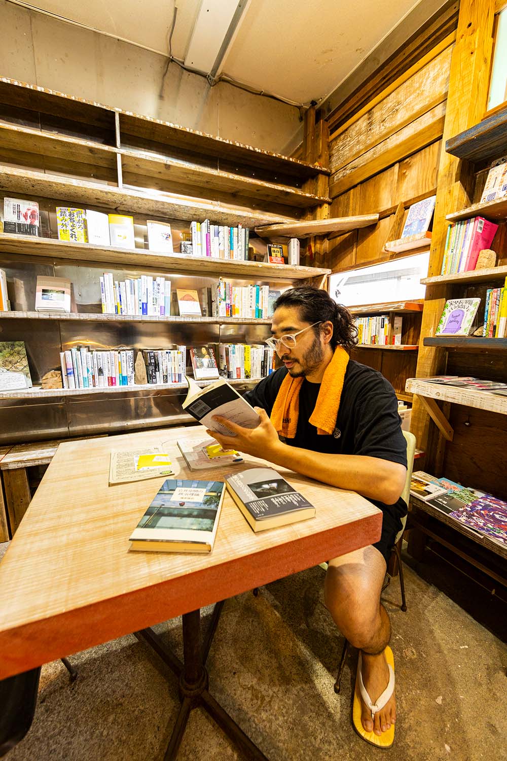 大久保さんが仲間とつくった書店。選書は人文書が中心。本を買うよりもおしゃべりしにくる人が多いらしい。