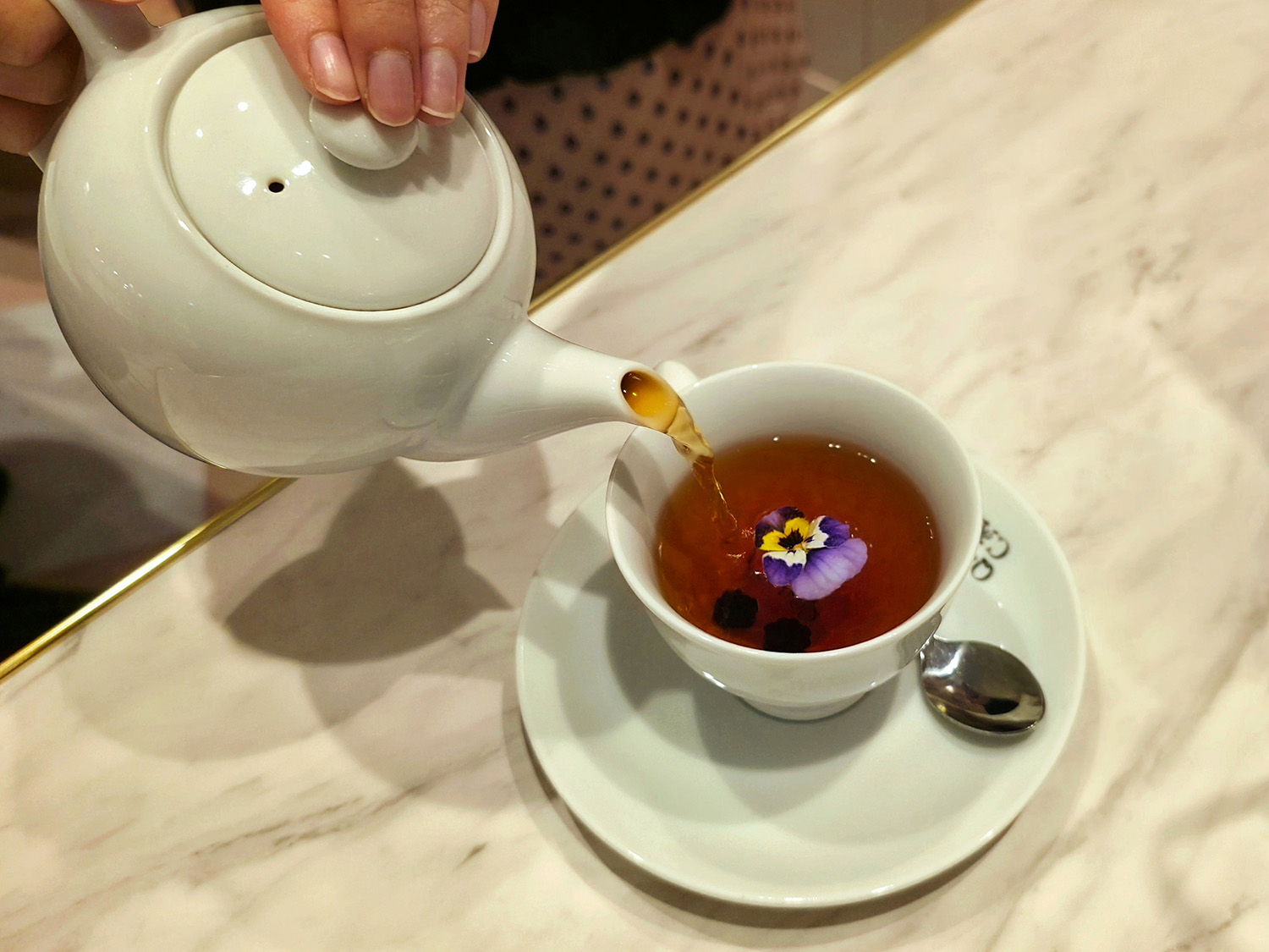 カップに注いだ時に浮き上がるすみれの花が最高です。