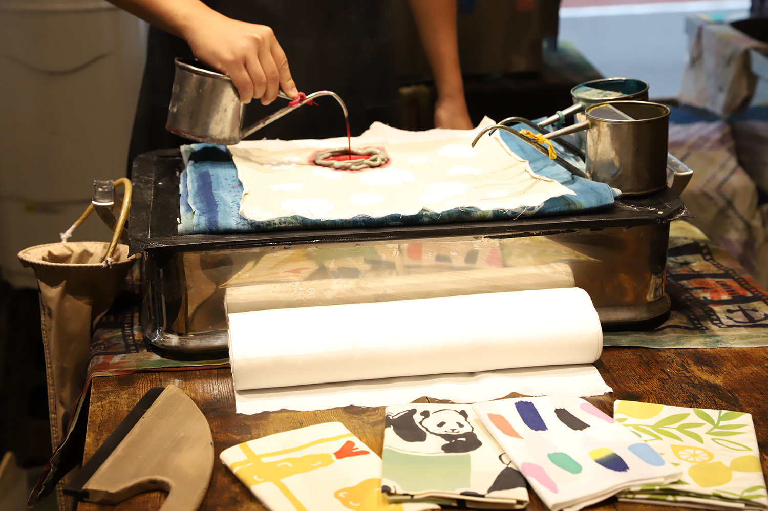 石畳など古代ローマの遺跡をモチーフにしたアンティーク調の時計を手作りする『Via Romana(ビア ロマーナ)』や、裏と表から染料を注ぎ入れる糸染めのため裏表のないきれいな手ぬぐいに仕上がる『にじゆら』などで、クラフトマンシップにふれることができる。