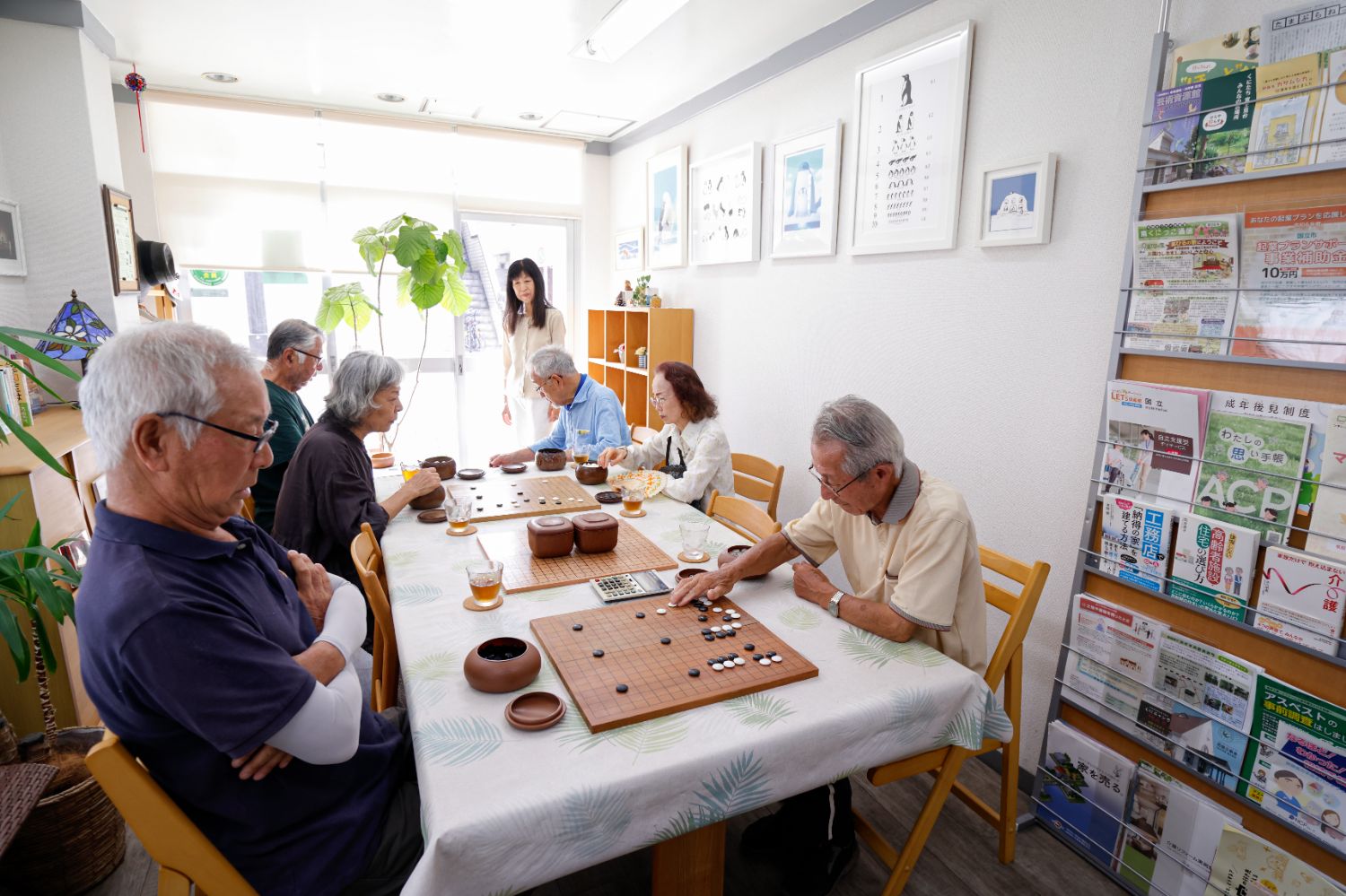 不動産業を営む鈴木恵子さんが、1人で過ごしがちの高齢者の“行き場”や“居場所”を目指して8年前から開く地域サロン。外光の注ぐ明るい空間には、「店名にしてからもっと好きになった」というペンギンの絵画や版画が1 年に1つずつ増えているという。休憩に、交流に、暮らしの相談に、誰でも利用OK。月4回の囲碁交流会をはじめイベントも開催。通常時はコーヒー200円も注文できる。