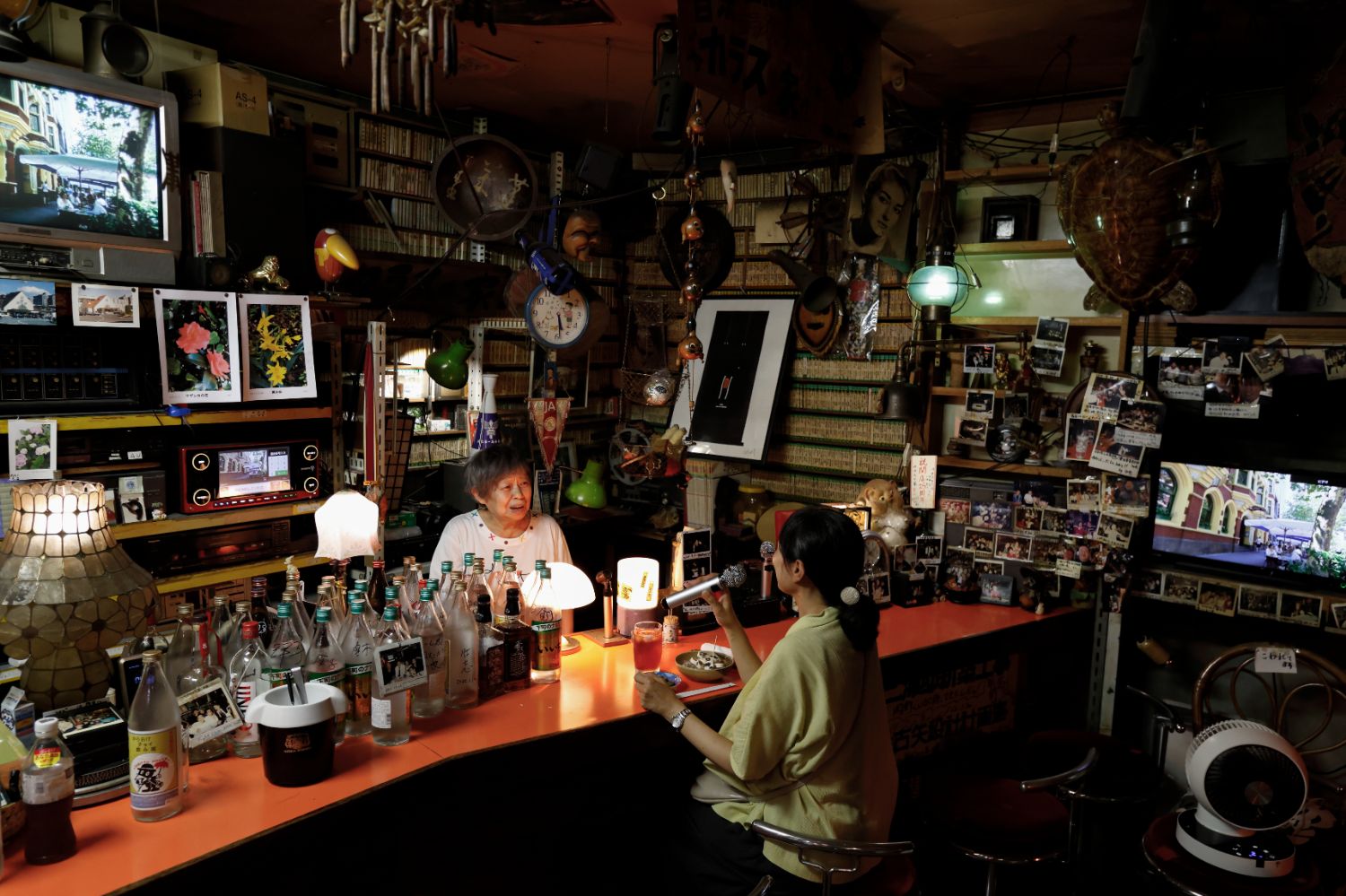 電気店から始まり、真空管アンプの製造・修理店『シーマ音響』が1982年に店内に開いたカラオケスナック。カラオケ機器は最新だが、壁に収まるカラオケカセットをはじめ、歴代のカラオケ機器が残る。外観や焼酎ラベルには知人のイラストレーターによるカラスの絵。お客さんが持ち込むうちに増えたというカラスグッズもあちこちに。集積したさまざまな物が不思議と調和した小宇宙だ。