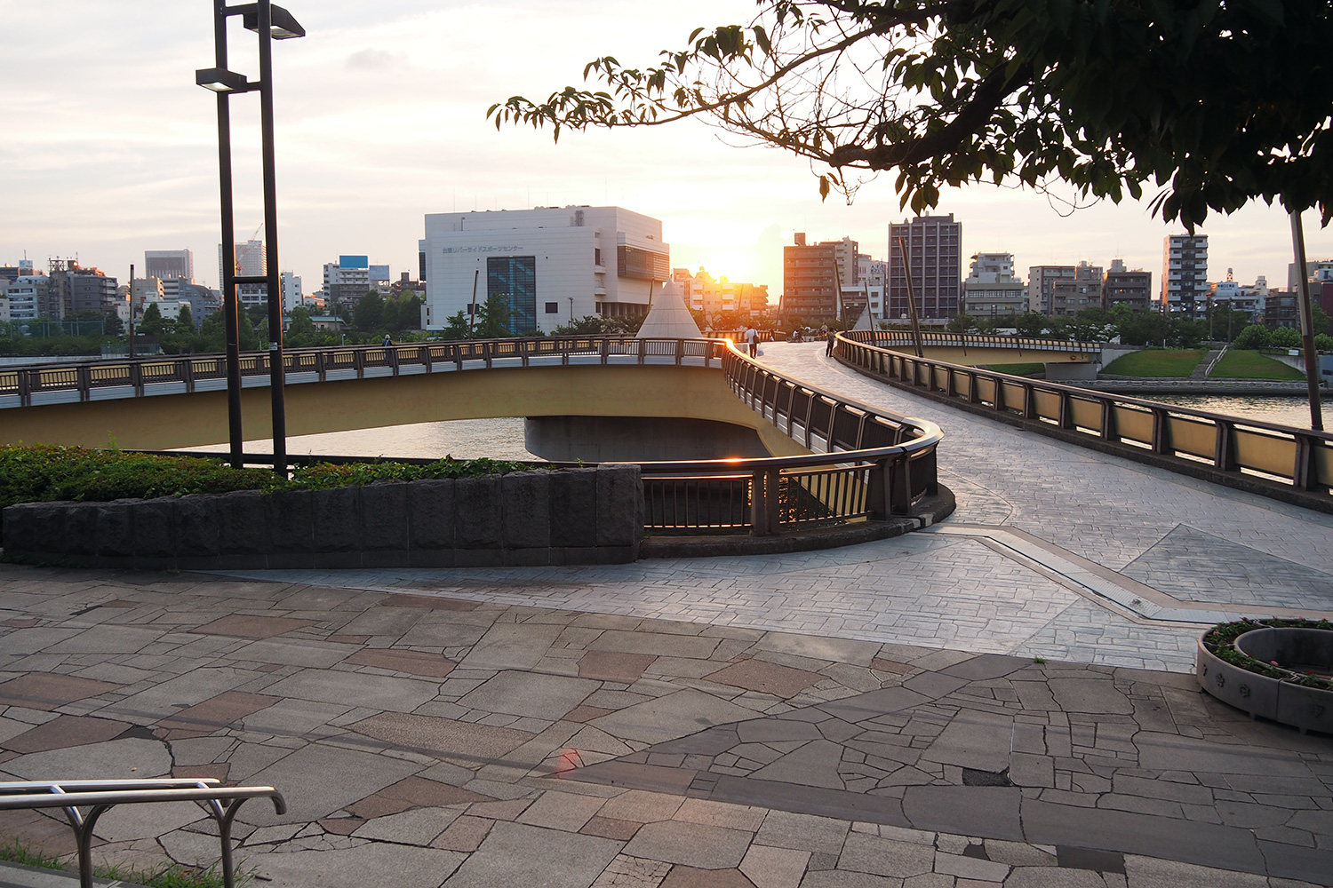 桜橋は、言問橋の500mほど上流で台東区今戸と墨田区向島をつなぎ、隅田川に架かる橋のなかでは唯一の人道橋。1985年に隅田公園の施設のひとつとして竣工し、架橋10周年の際に設置されたモニュメントも橋の上にある。細いX字型で、橋というよりはちょっとした遊歩道を歩いている気分だ。