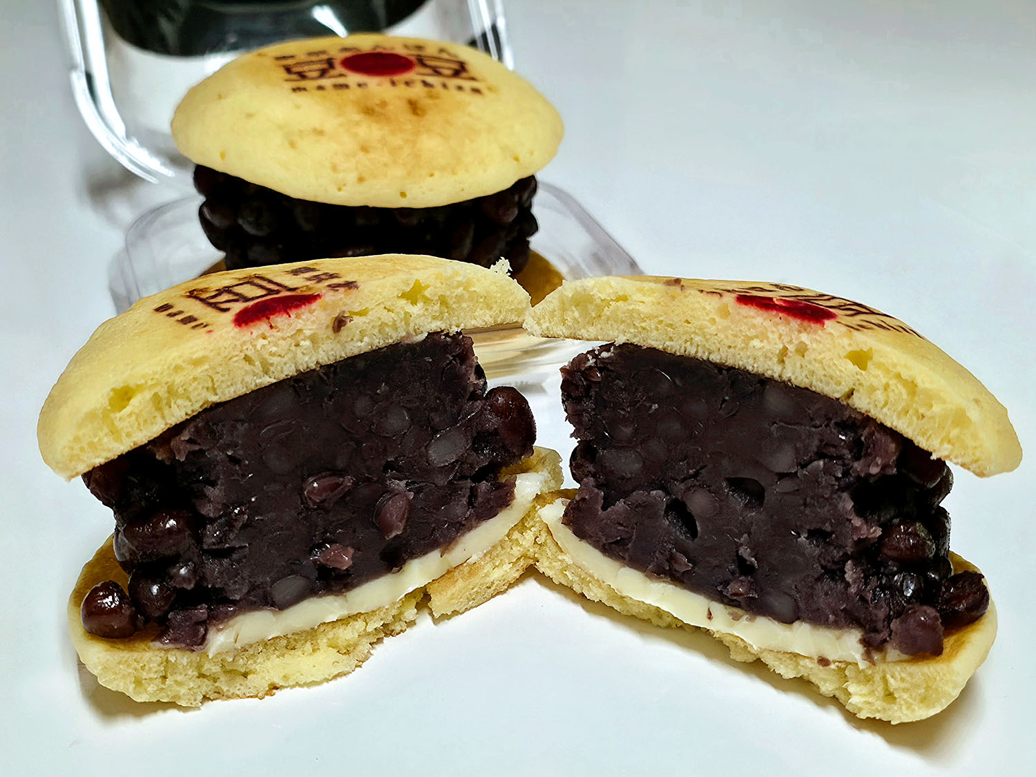 ふんわり生地の中に、こしあんとクリームのダブルで入っています。