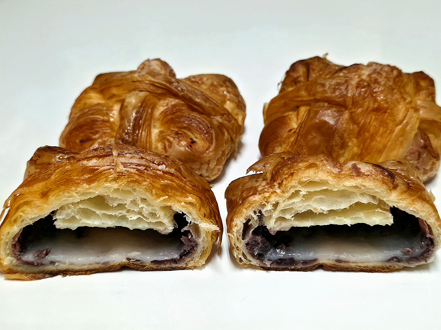 サクサクのデニッシュ生地の中には、おもちと粒あん。おもちが入っているから“もっちりあんこ”なんですね。
