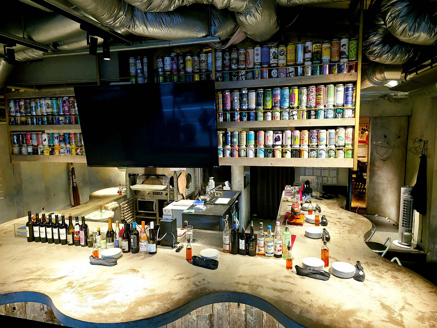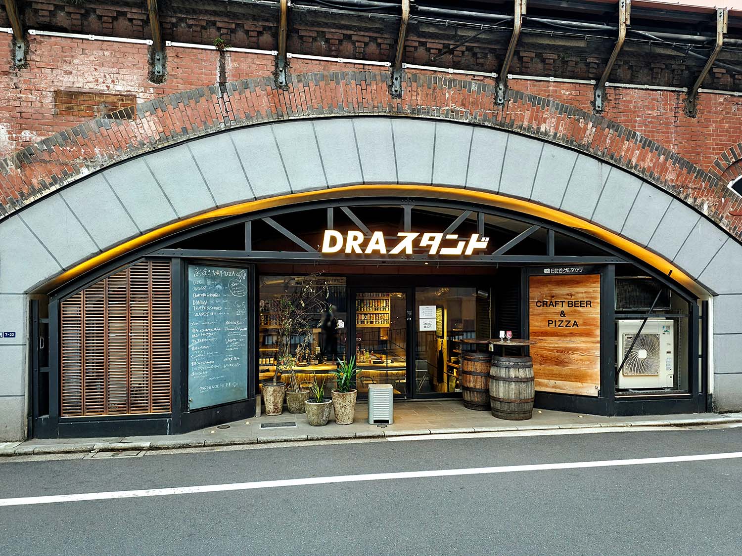 店内に入ると『DRAスタンド』は、大きなカウンターがメインのピザやクラフトビールが楽しめるバル。