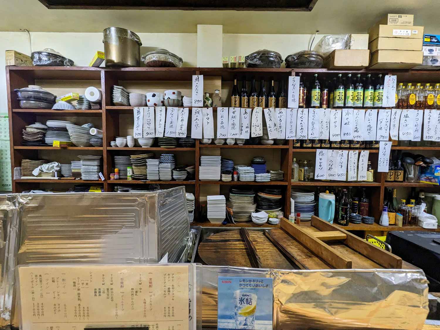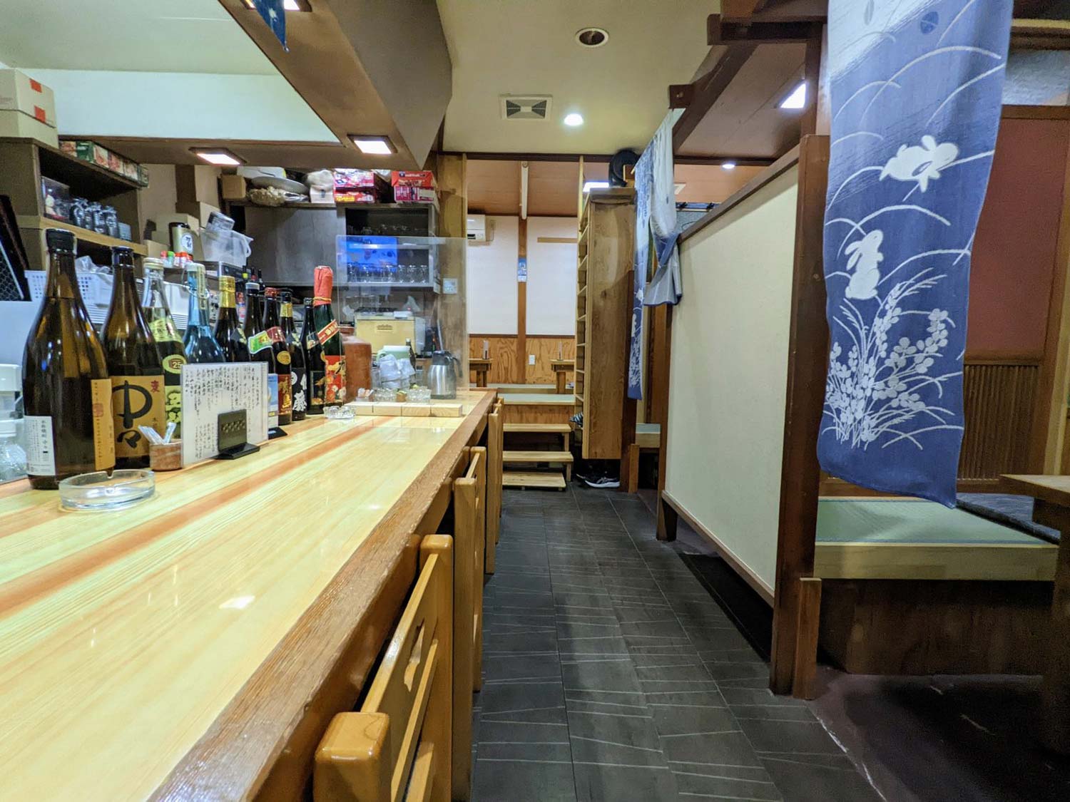 おおっ、中は立派な大衆酒場! 半分は磨かれた白木の長いカウンターと、もう半分は小上がり。うわあ、こんな雰囲気がちょうど大好きなんだよなあ。