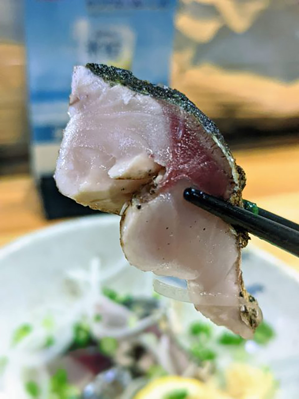 ──鯖の脂がほどよくのっていて、カツオとはまた違ったコクがある。なじみのある食べ方だからこそ、ある意味安心して味わえる一品だった。