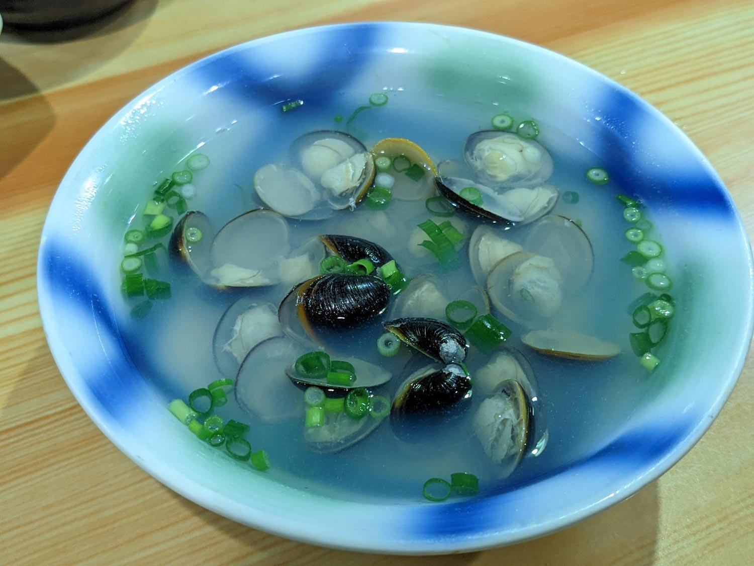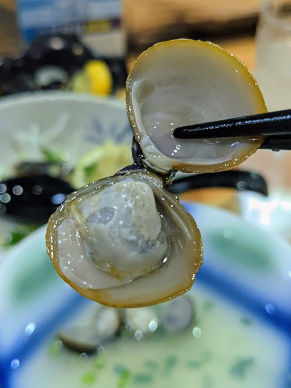 松江で頼まないわけにはいかない「シジミの酒蒸し」は、意外にも“甘い”スープが印象的。しじみの旨味が酒とともに溶け出し、口に含むとじんわりと染み渡る。まるで体の奥から癒やされるような、そんなやさしい味わい。