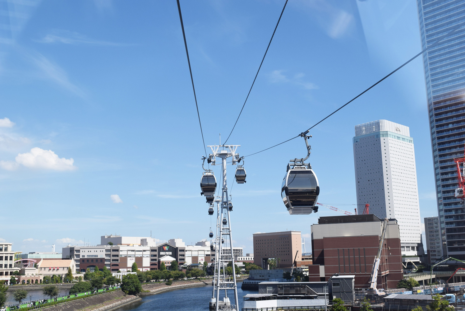 つまりYOKOHAMA AIR CABINは桜木町駅前から観光スポットの集まるエリアまでをつないでいる乗り物なのである。それにしても、こんなに都会にいきなりロープウェイがあるというのはすごいことだ。