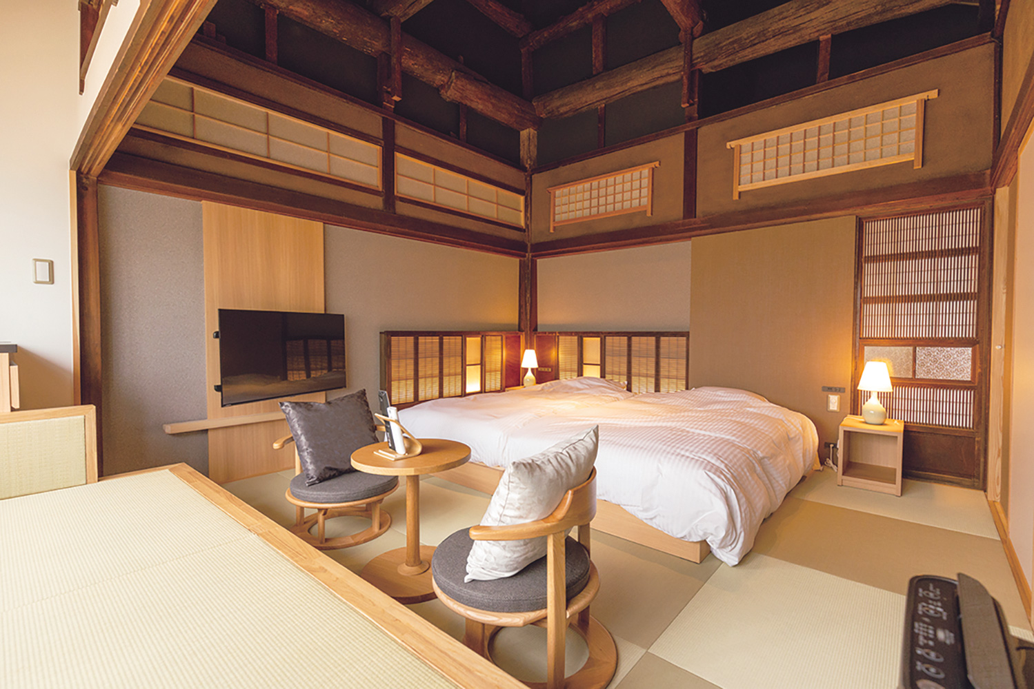 秩父神社の参道沿い、昭和レトロな風情が残る番場通りにたたずむ築150年以上の古民家を改装したホテル。非対面式のチェックインでのんびり寛(くつろ)げる。