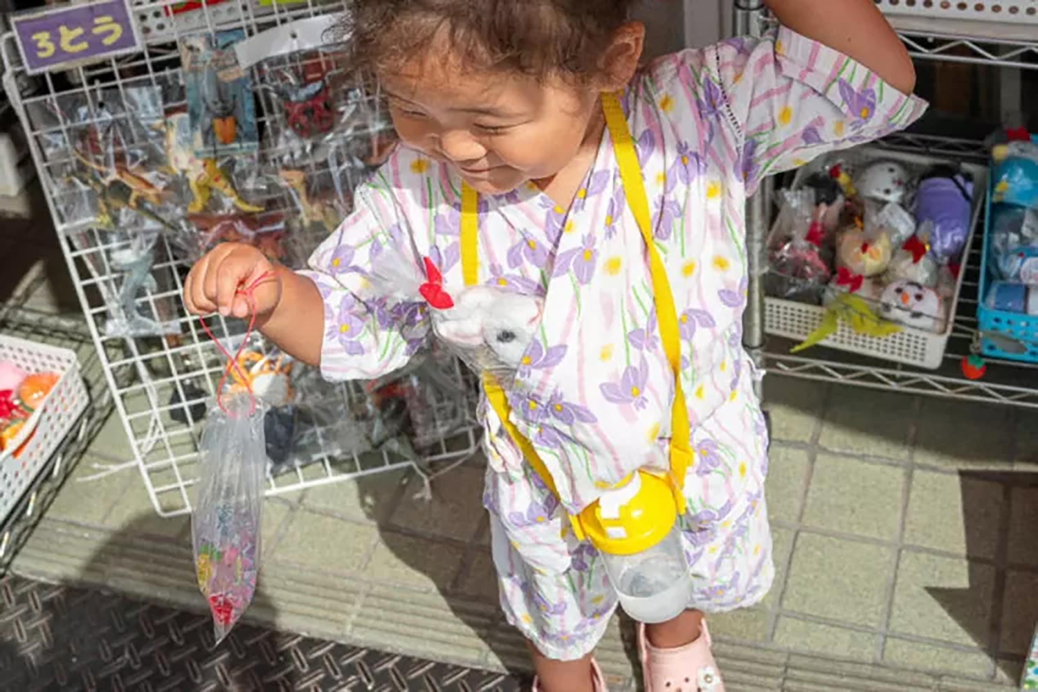水に浮かぶさまざまなきらきらアイテムに娘も吸い込まれるように挑戦しました。普段からイベント出店で縁日遊びも行っているそうで、やはりここでも大人気とのこと。