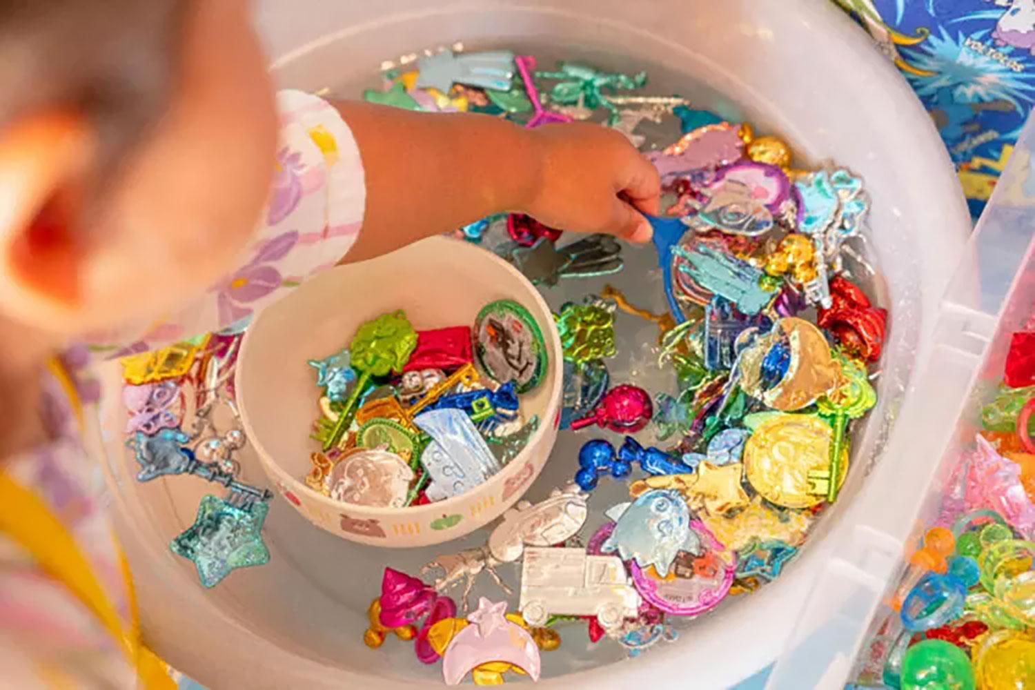 子供の背丈に合わせて置かれたくじの数々。娘も大喜びで、すぐに夢中に!