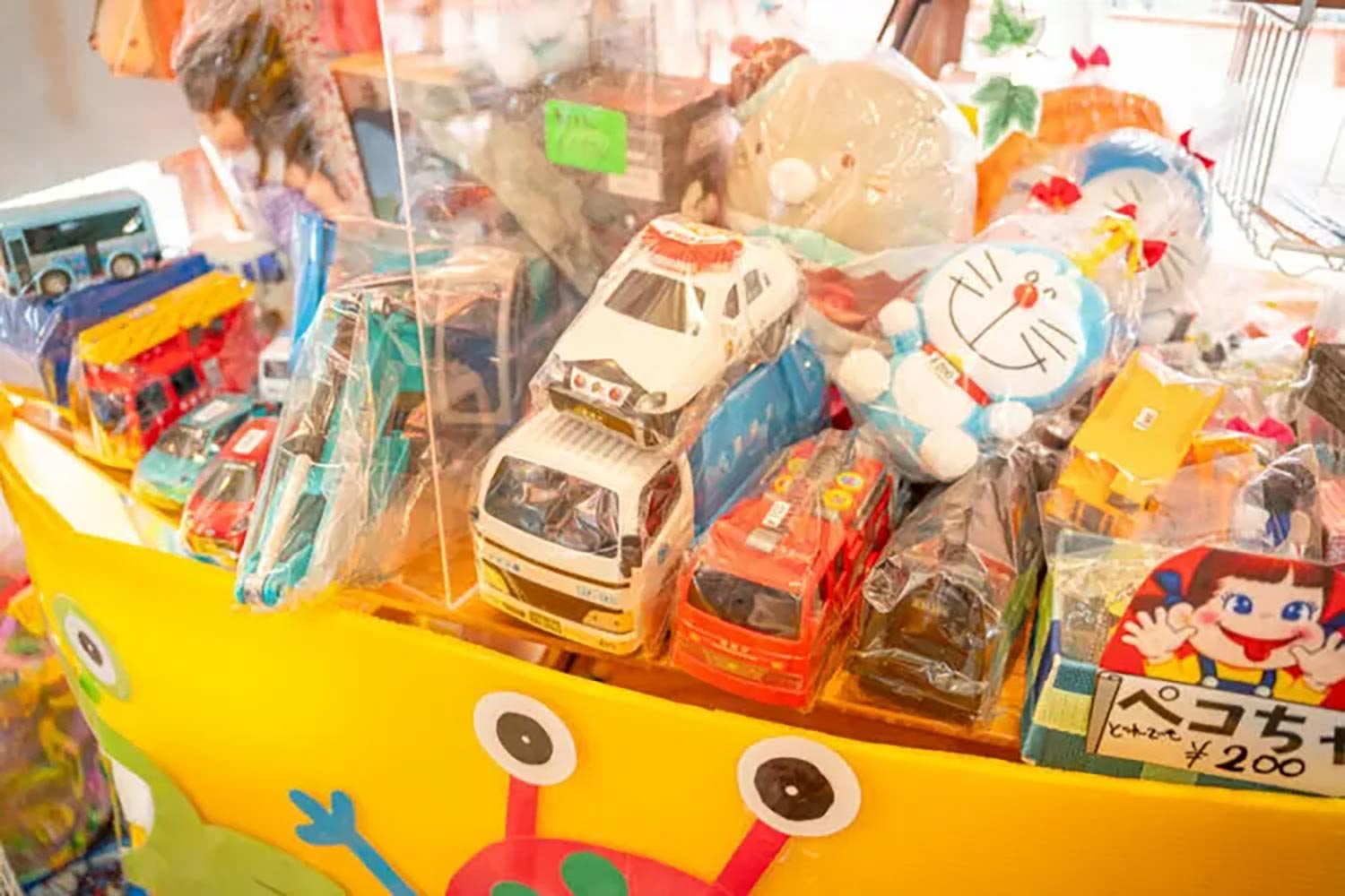 見れば見るほど新しい発見があります。小学生くらいのお子さんでも欲しくなるキャラクター系の品揃えや、鉛筆や靴下といった実用的なアイテムまで。気づけばたくさん買ってしまいそうになる充実度です。