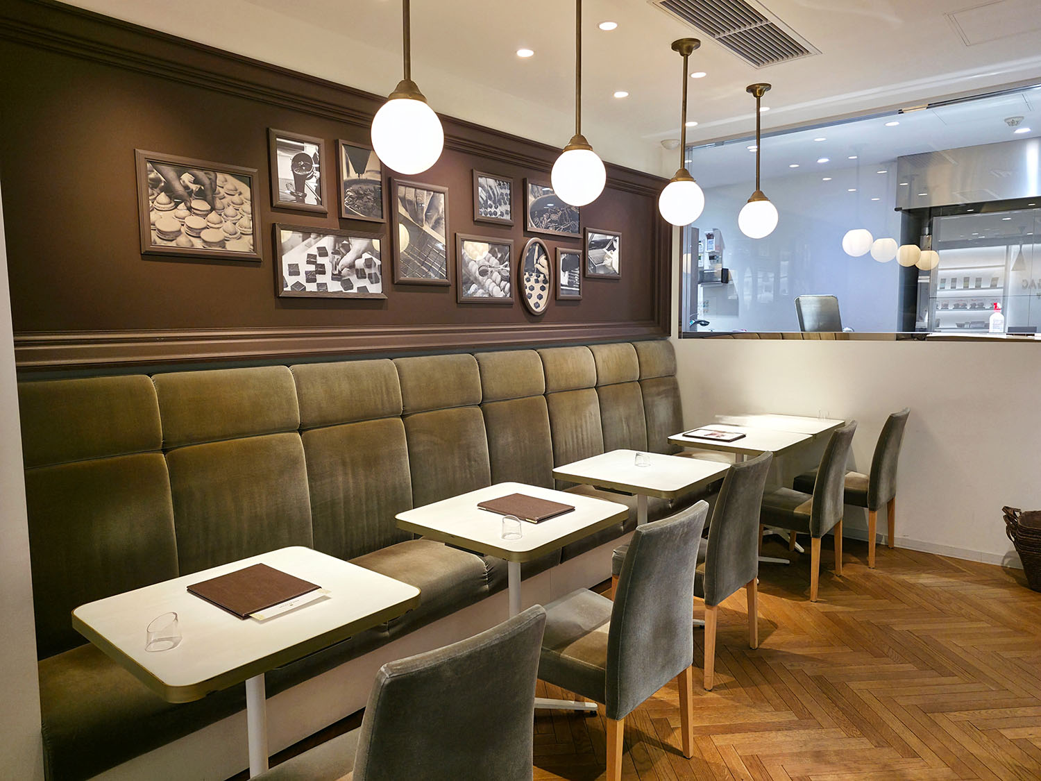 店内はカフェも併設しており、ゆったりとした空間で、パスカル・ル・ガックのチョコレートの世界観を楽しめます。