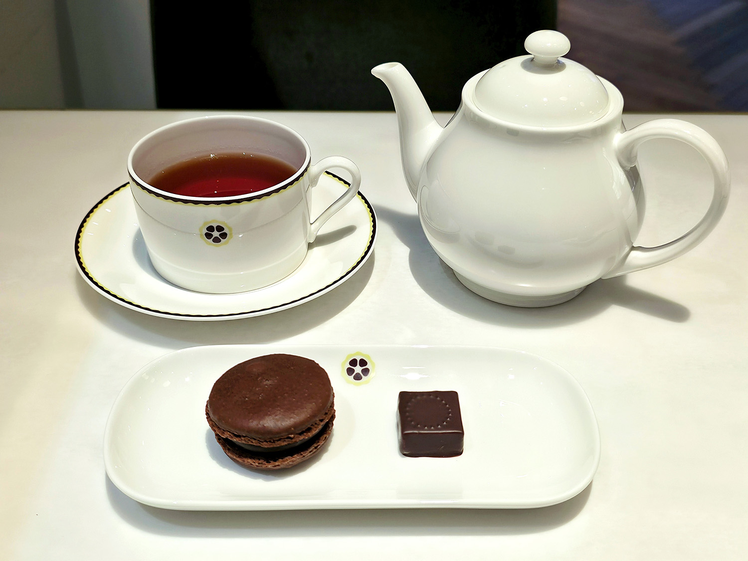「デギュスタシオン」は、おすすめのドリンクとのセット。ボンボンショコラとマカロンは、好きなものを2つ選ぶことができます。