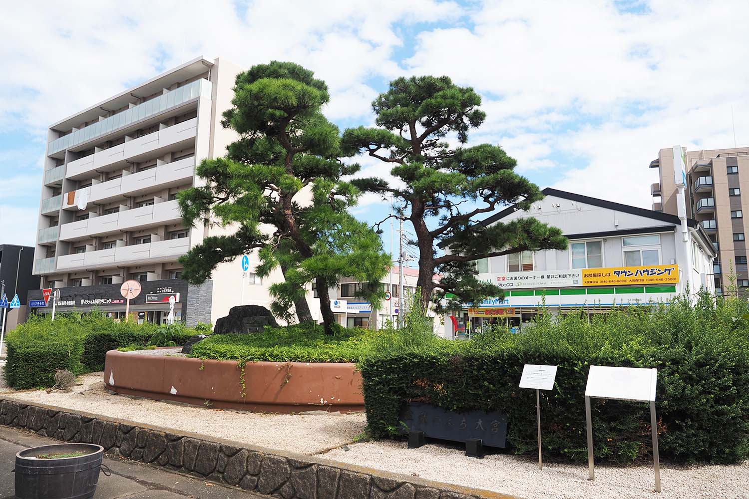 アカマツが3本。その下が器のようになっていて、まるで盆栽のようだ。そう、ここは盆栽で有名な街なのだ。