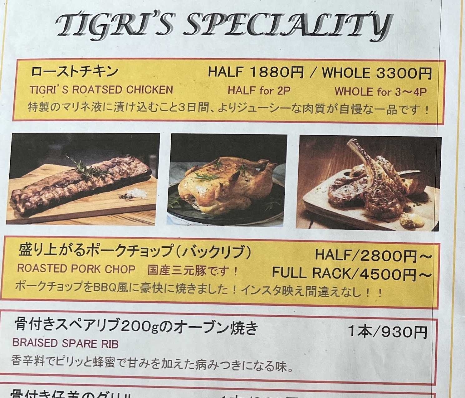 ここは『ワイン&クラフトビール肉バル ティグリ』(以下『ティグリ』)。2018年にオープンした、ワインと多彩な肉料理が味わえる店だ。新鮮な食材で作るイタリアンメニューも豊富にそろう。