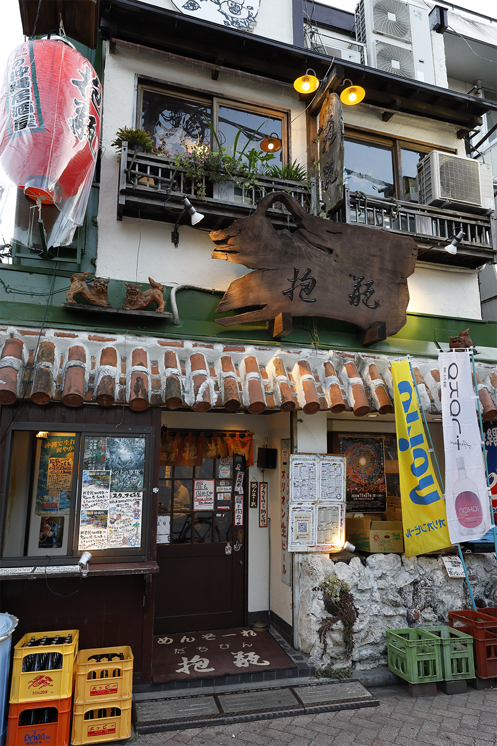 創業1978年の沖縄料理店『抱瓶』では頻繁にライブが行われ、渋さ知らズなど有名バンドも出演する。ブッキング担当はギター小僧で気づけば客から店員になっていたという、華村灰太郎さんだ。「毎年、みんなで沖縄に研修に行く。民謡も盛んで音楽と街が密接しているんです」。なるほど、沖縄の雰囲気が詰まった店は、音楽との相性も抜群。料理も雰囲気も最高だ。