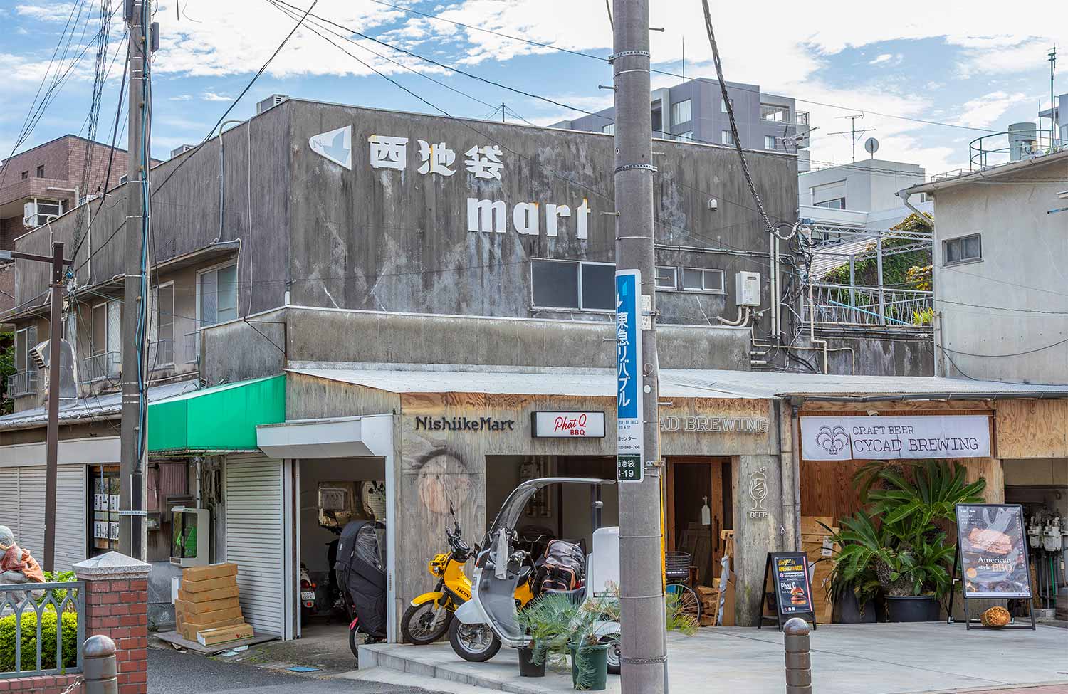渋い谷端川南緑道に入って要町エリアへ。立教通りの西端の飲食店地帯へ出る。まず目に付くのは元マーケットをリノベした『NishiikeMart』。味な建物の中でクラフトビール『CYCAD BREWING』とバーベキュー『Phat Q』の2軒が営業中。間近には台湾ベジカフェの名店『TSUMUGU CAFE』。他にもディープな店が、自然発生的に軒を並べている謎スポットだ。